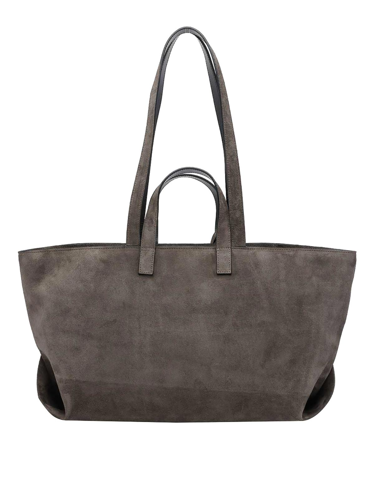 Sac à bandoulière A.P.C. Fonce le Drummer gris, fermeture zippée, poche intérieure ouverte, 2 poignées, 2 poignées d'épaule, 2 pochettes extérieures amovibles, daim