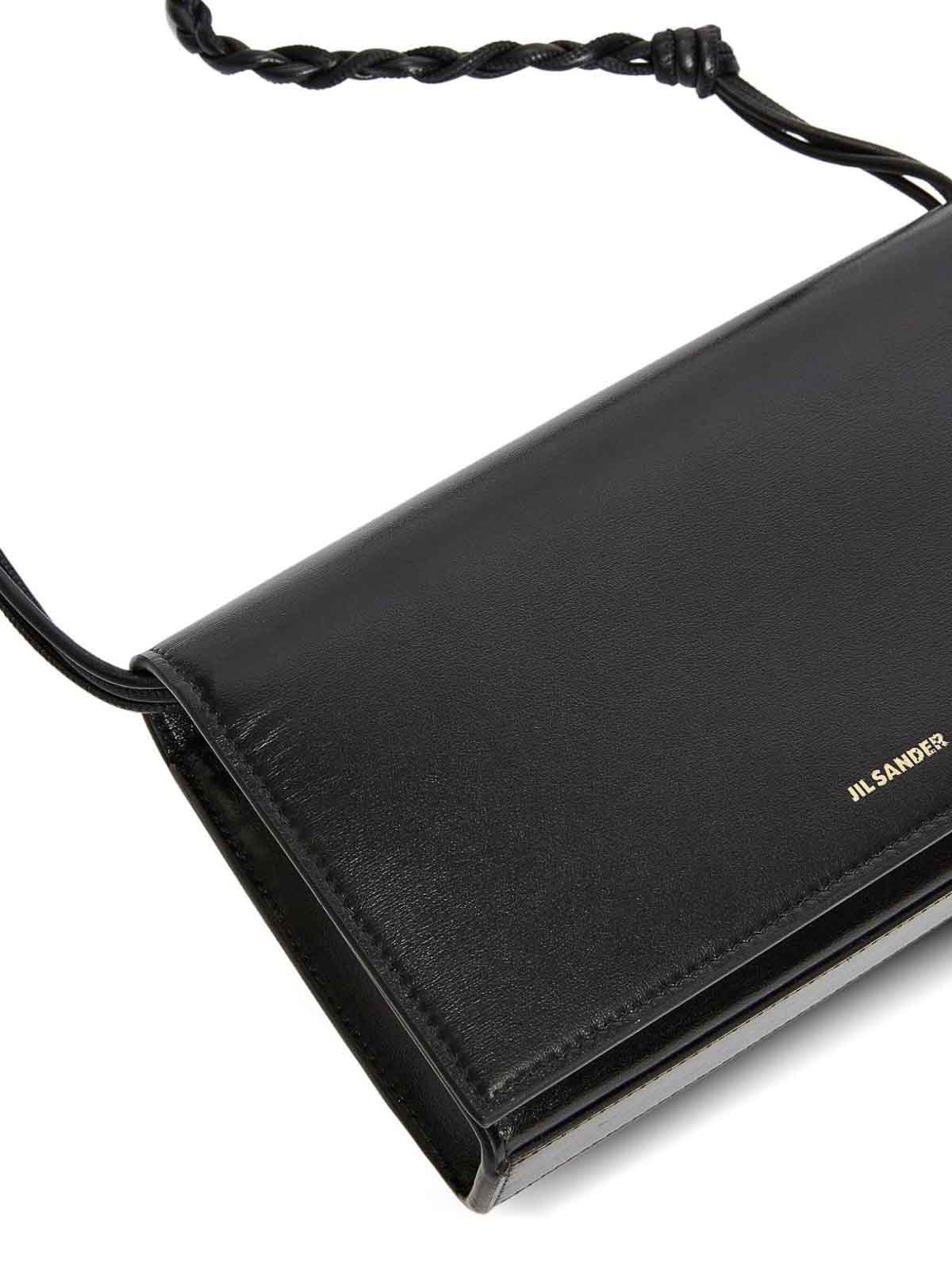 Logo noir embossé, forme rectangulaire, fermeture à bouton magnétique, poche zippée