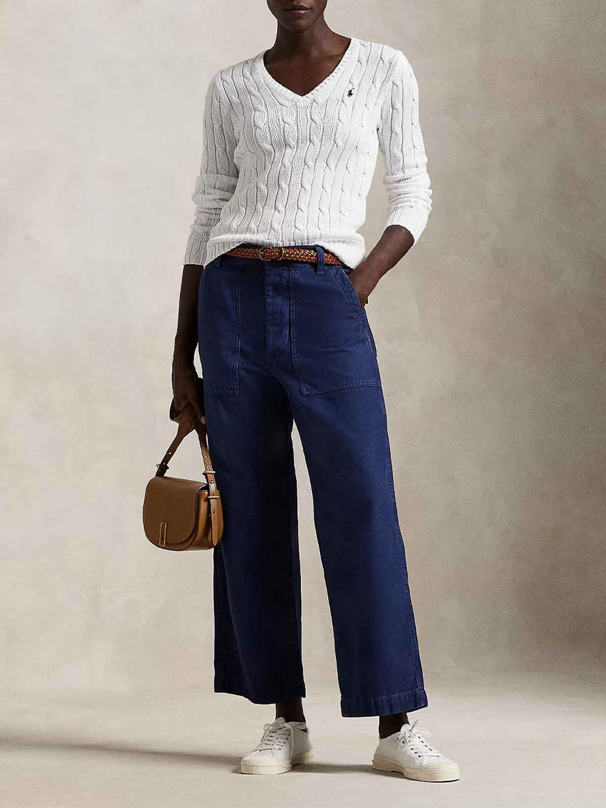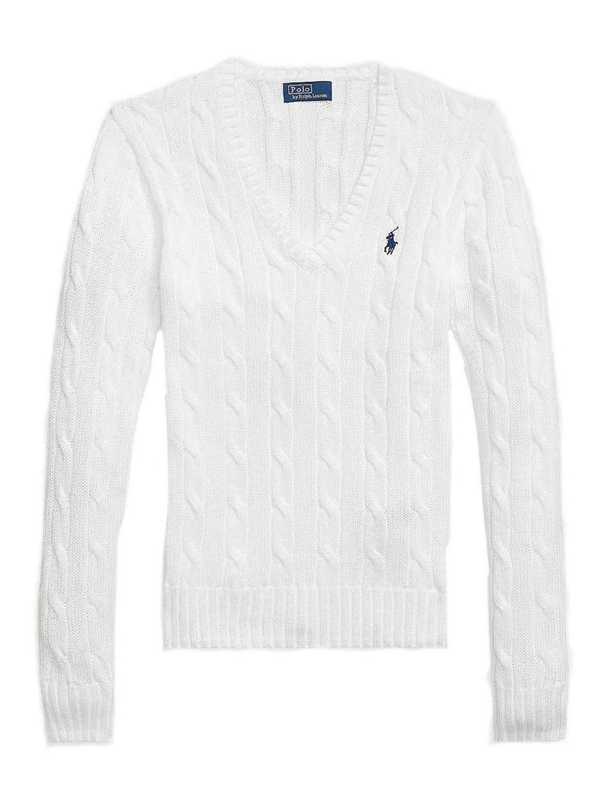 Ce polo Ralph Lauren en coton peigné doux présente un col en V, des détails en maille torsadée et une silhouette ajustée avec un poney brodé sur le côté gauche de la poitrine.