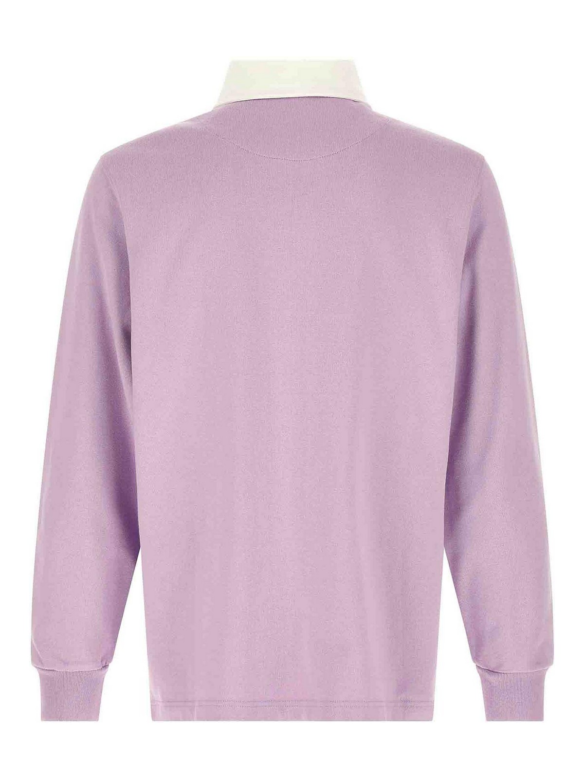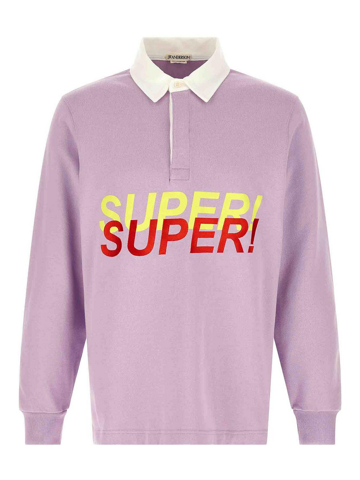 Polo en jersey délavé, style rugby avec broderie « super super » au point satin, col et boutons en sergé de coton, manches longues à revers.