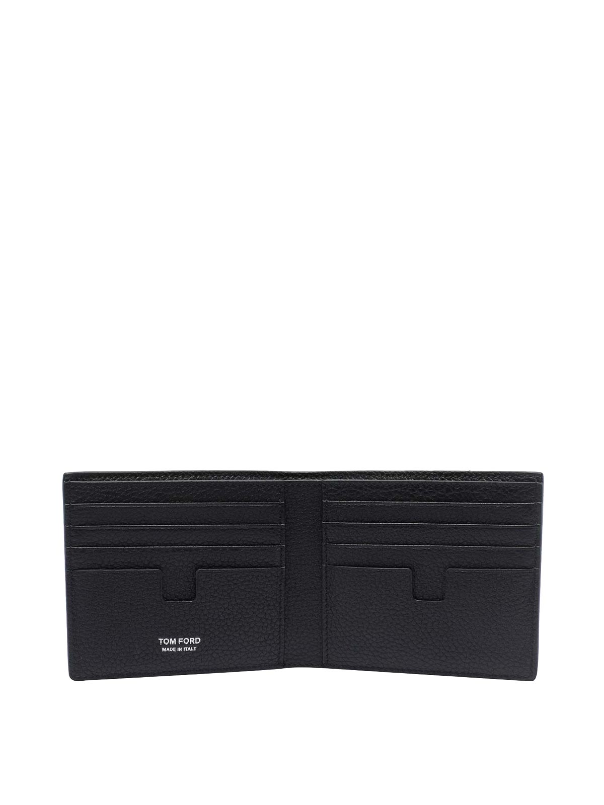 Portefeuille noir Tom Ford, 8 emplacements, 2 poches plates, un compart.mes nt pour billets de banque, logo sur le devant