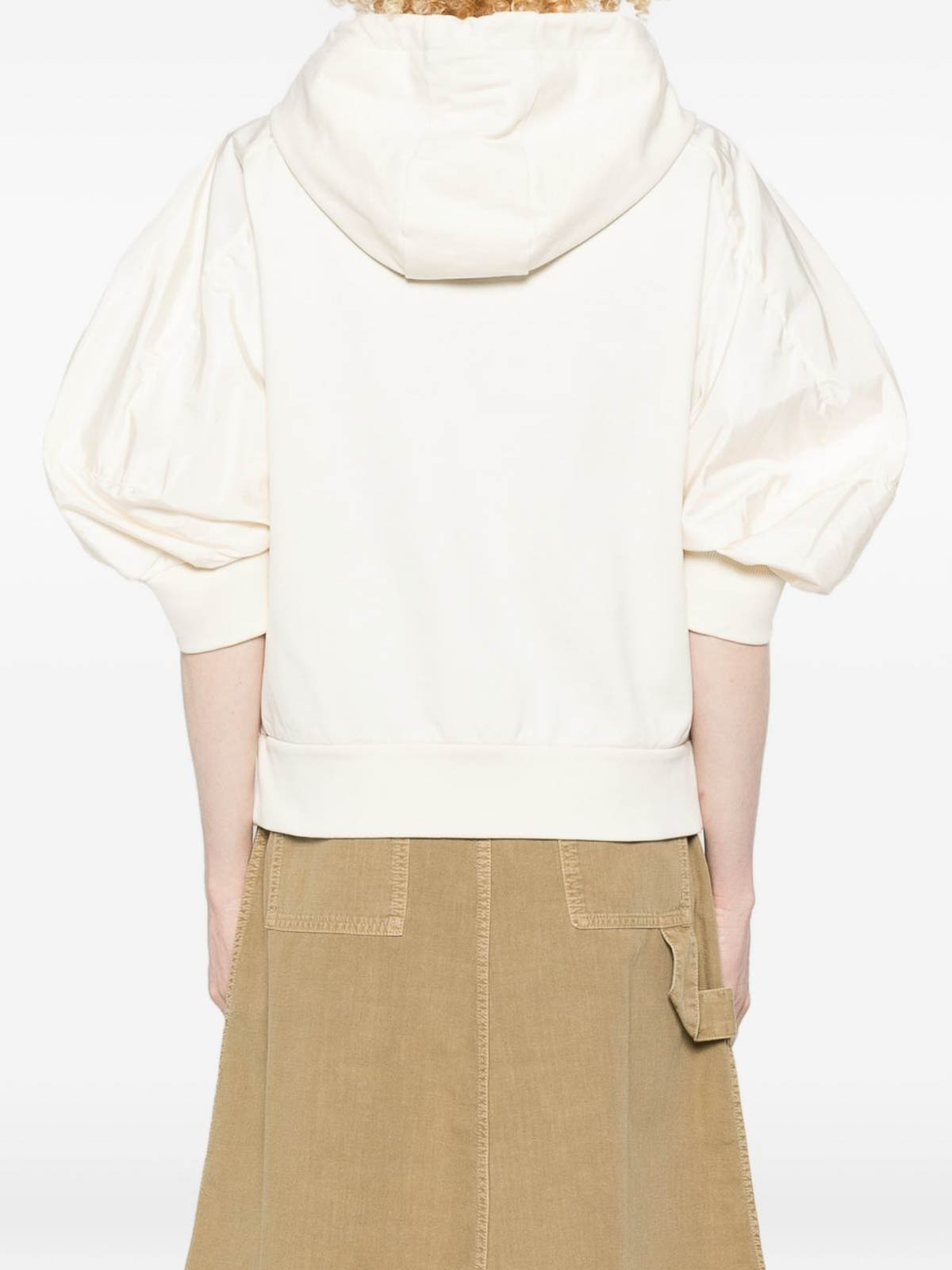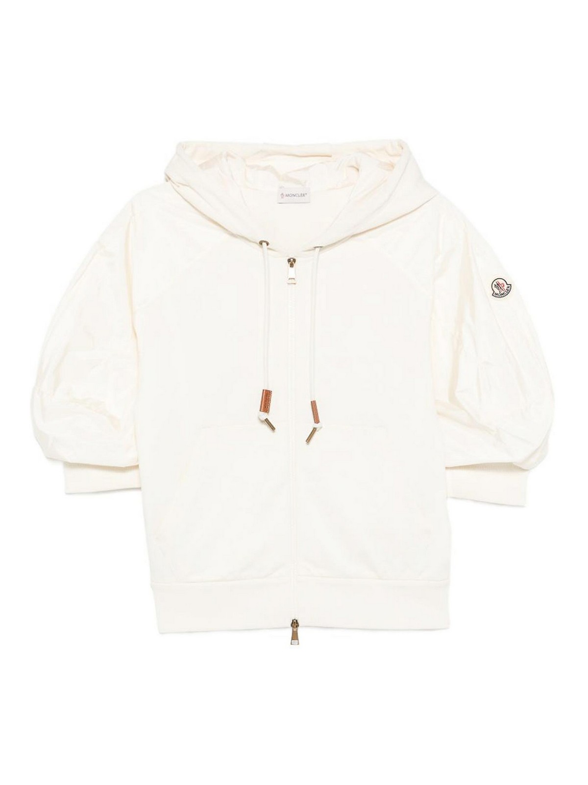 Manches bouffantes à capuche blanc cassé, fermeture zippée sur le devant