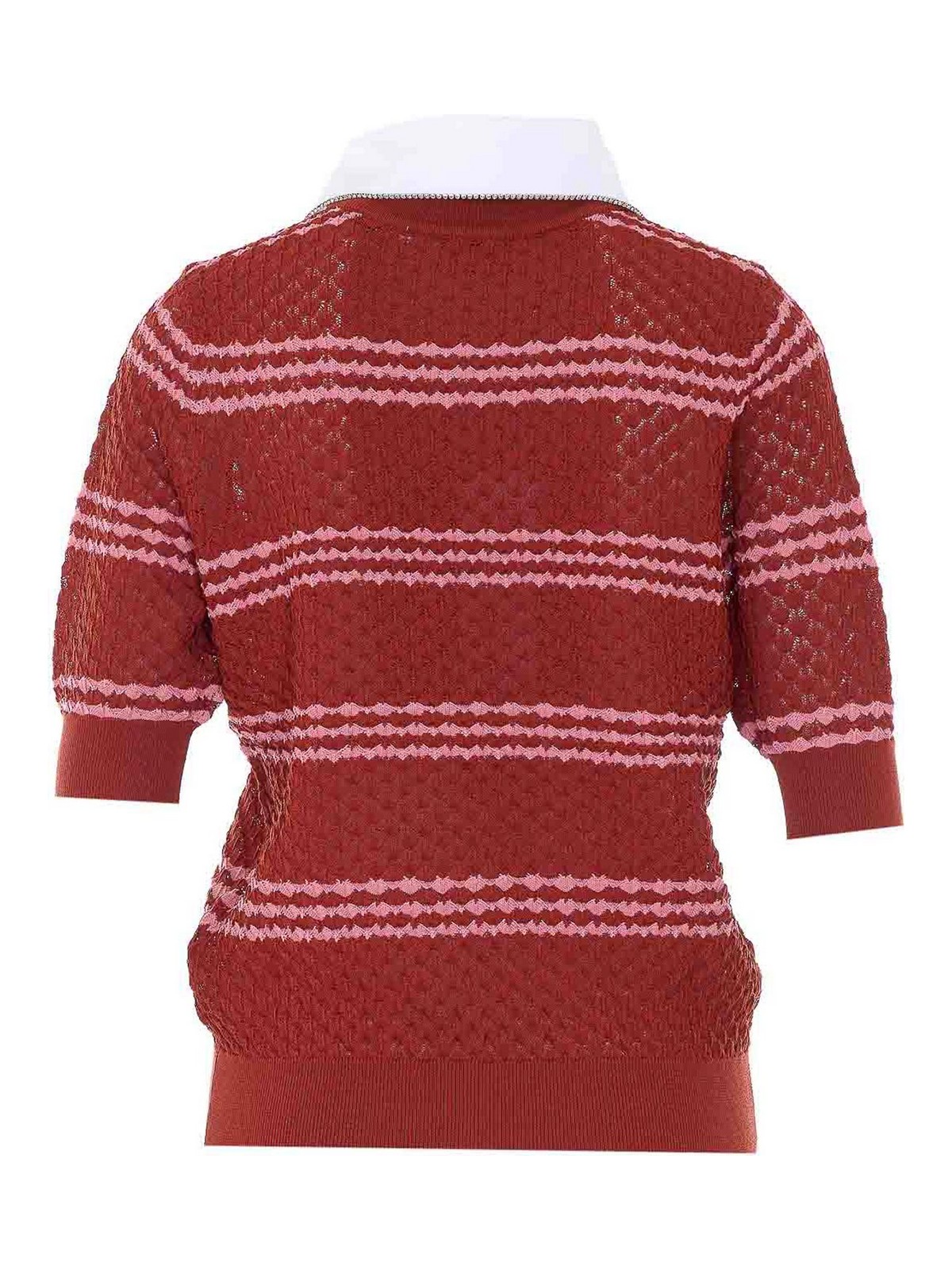Pull en jantasy rouge Essentiel Antwerp, col rond, col amovible avec détails en strass, manches courtes