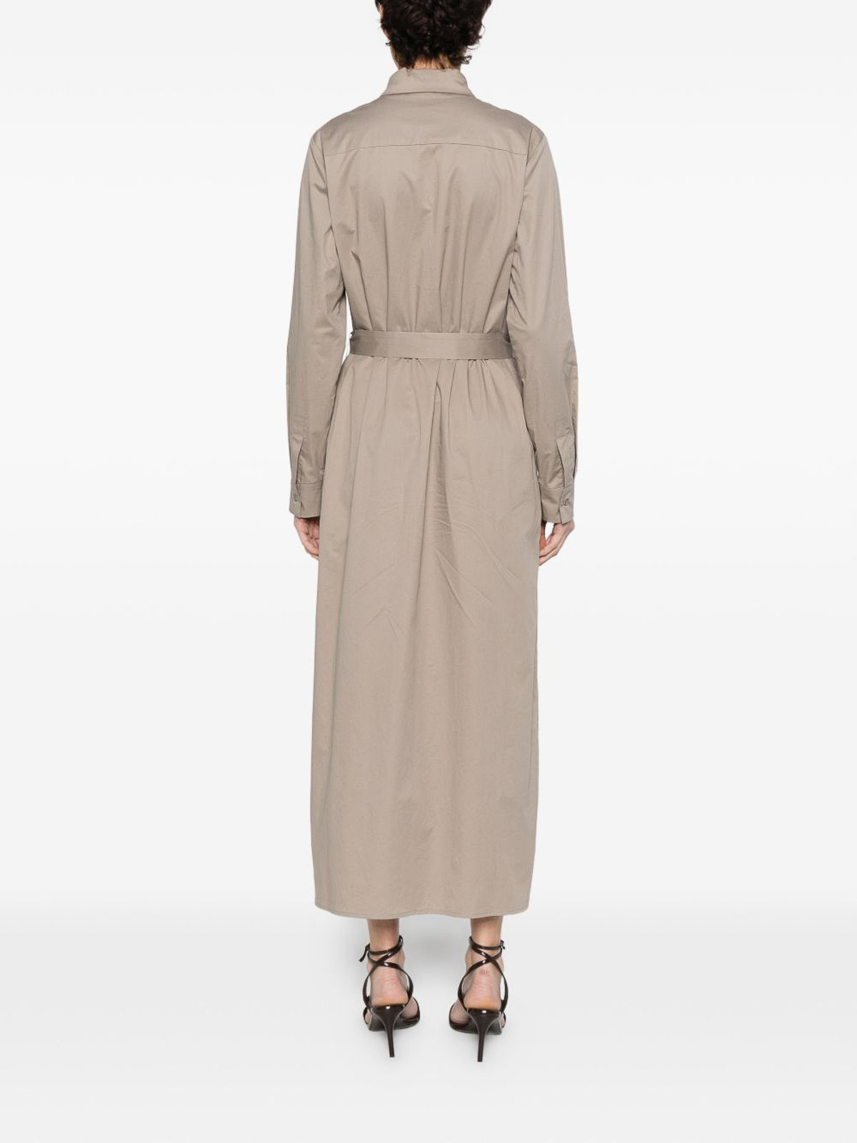 Robe taupe avec ceinture de la marque Peserico, élégante et polyvalente, parfaite pour les tenues formelles et sophistiquées. silhouette raffinée avec tissu de haute qualité pour un style féminin intemporel.