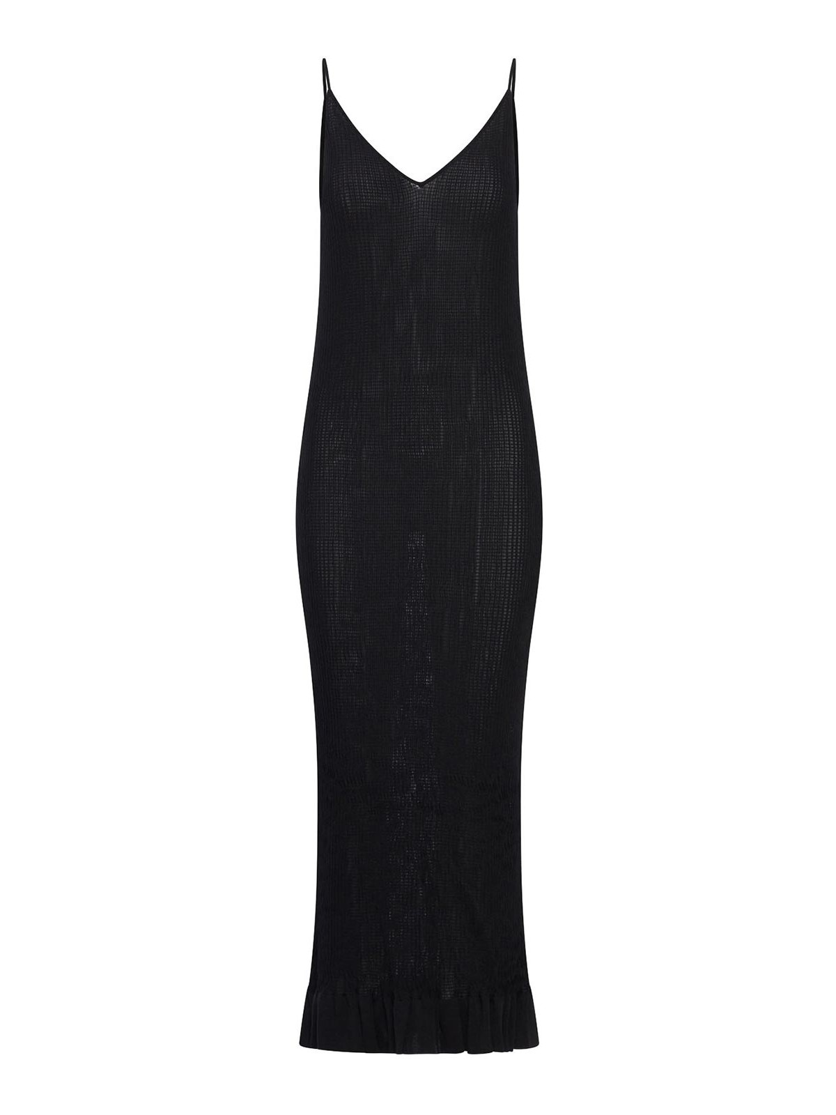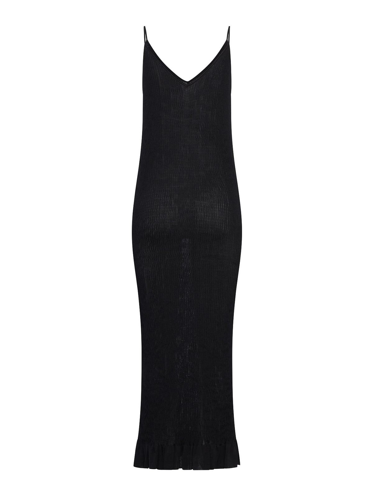 col en V, bretelles, ourlet volanté, coupe ajustée, couleur : noir