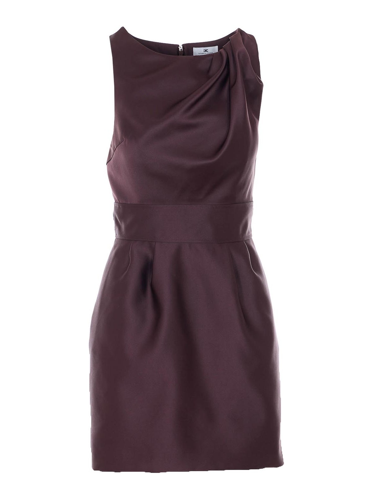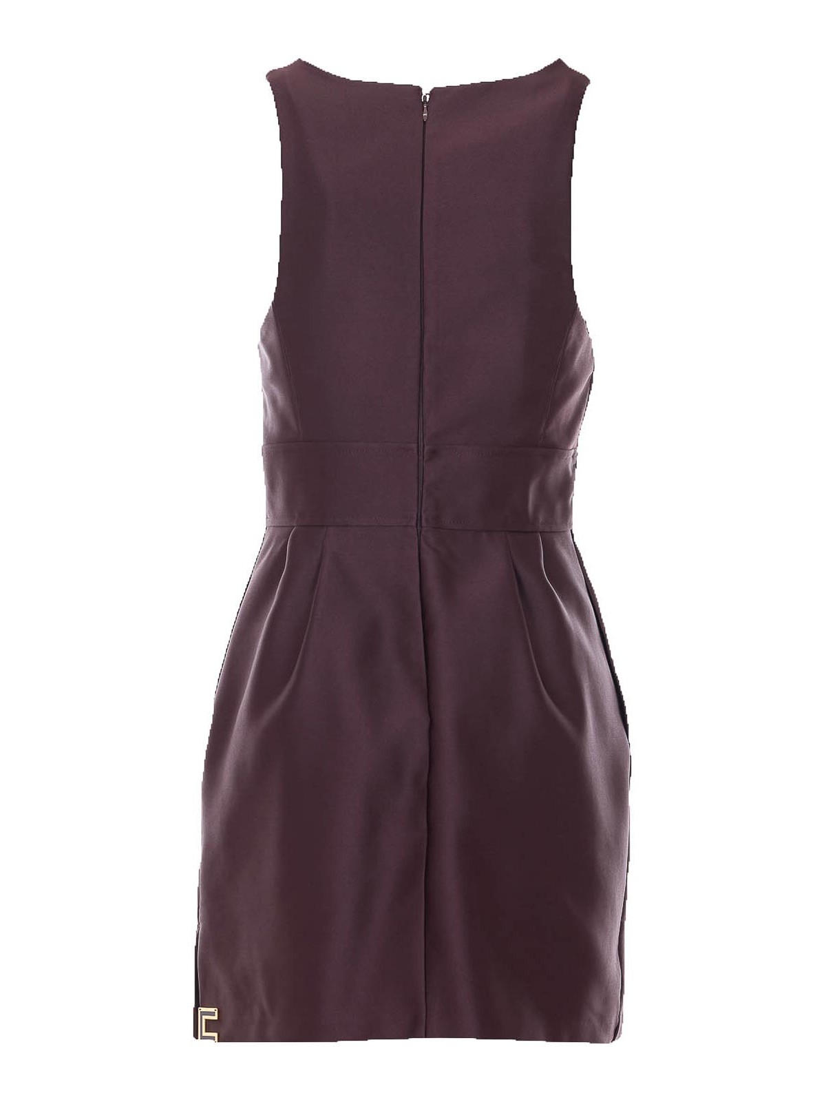 Mini-robe marron Elisabetta Franchi, fermeture zippée et crochet, sans manches, poches latérales, logo à plaque sur le côté