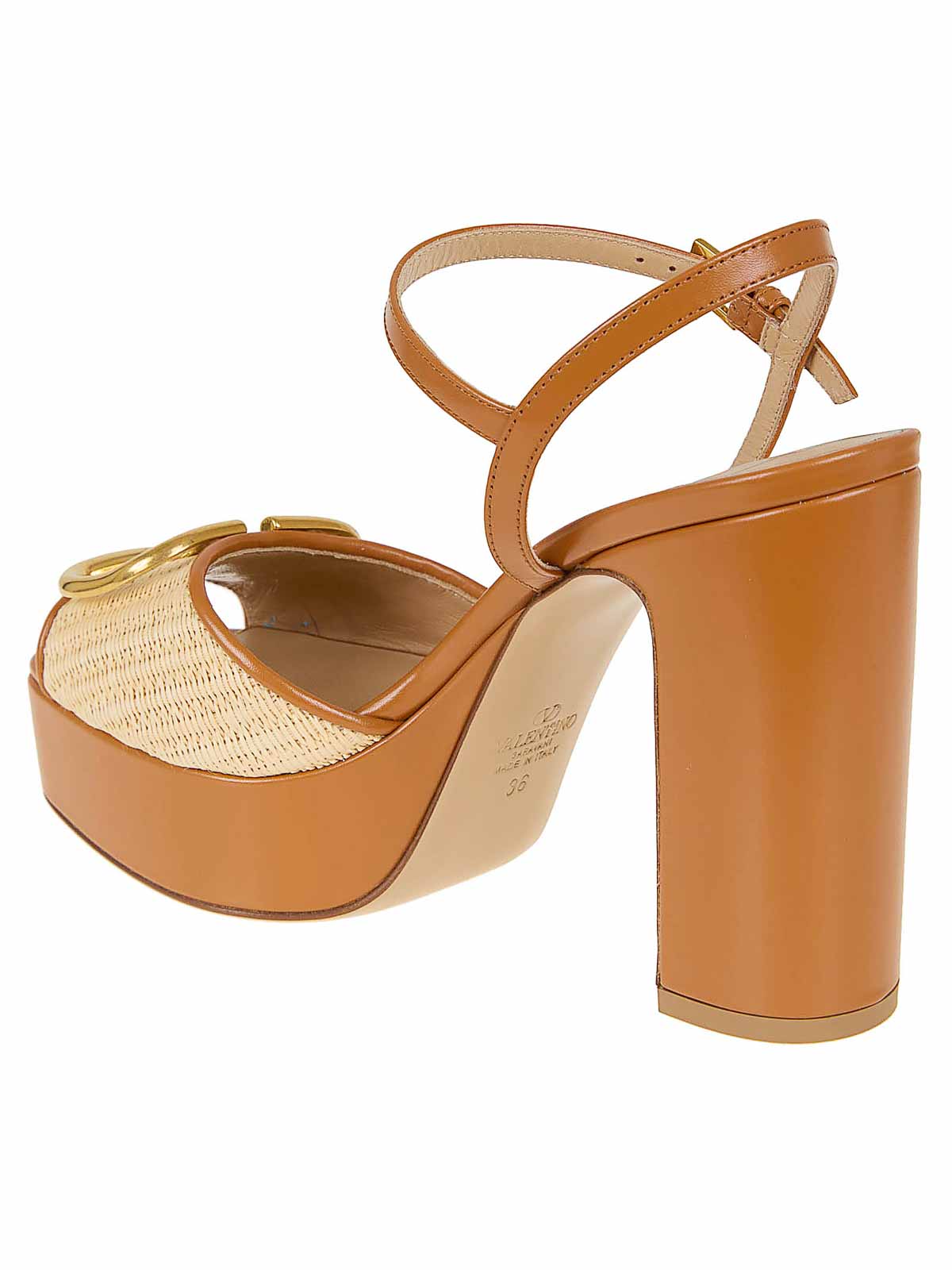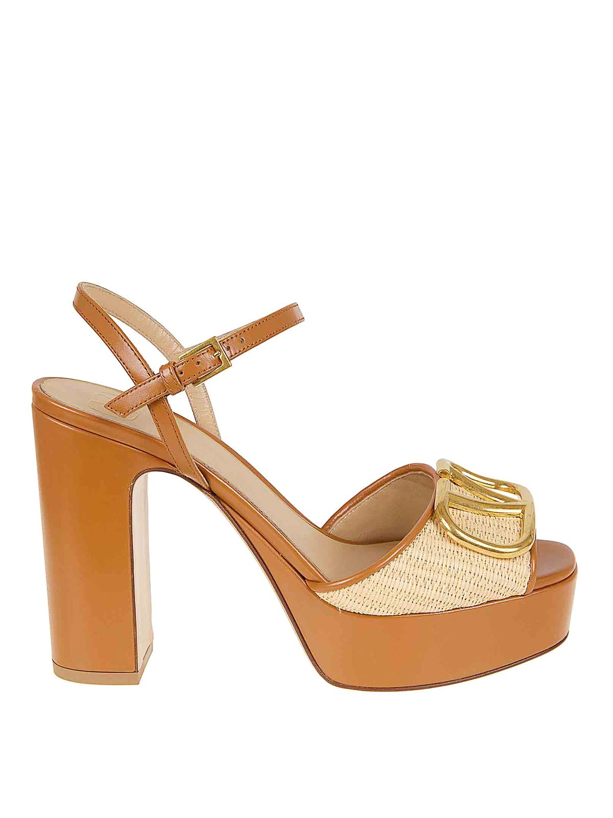 Sandale signature Vlogo en raphia synthétique et signée Valentino Garavani avec large bride ajustable à la cheville () et (), caractérisées par un accessoire signature Vlogo