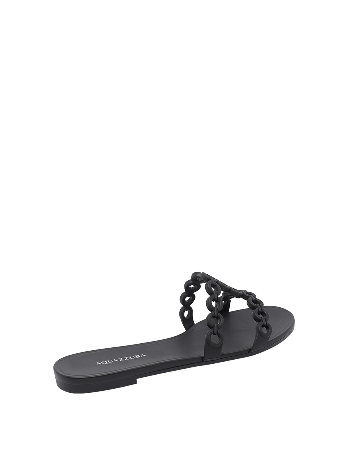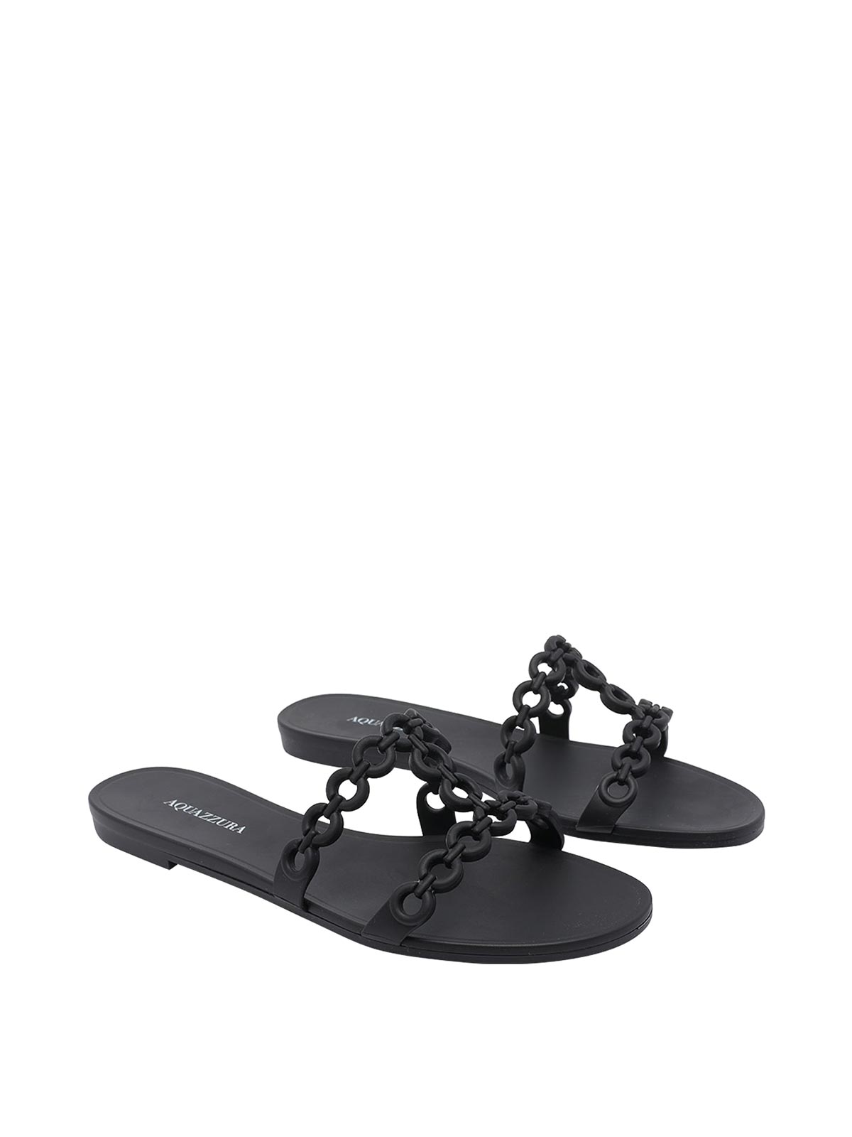 Sandales plates Aquazzura noires Infinity Chain Jelly, bout rond, modèle en caoutchouc