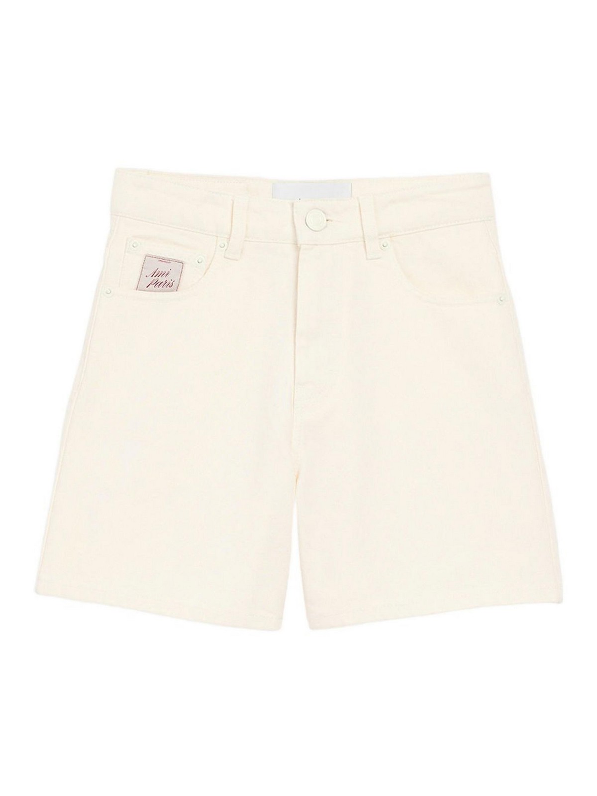 Doté de coutures ton sur ton, blanc crème, cinq poches, rivets métalliques en denim, fermeture à bouton jacron, composition 100 % coton.