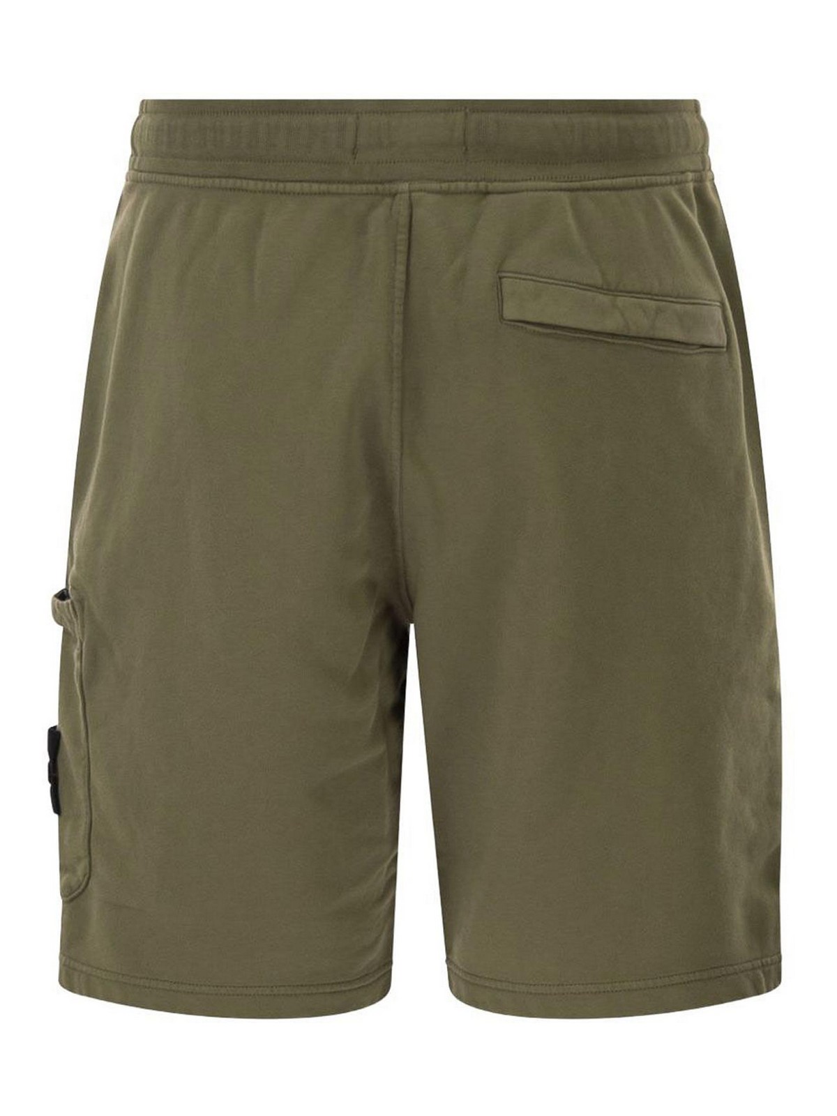 Short cargo vert militaire de Stone Island en coton biologique au design fonctionnel et contemporain. Doté d'une ceinture élastique avec cordon de serrage, de poches cargo et de poches arrière à rabat, il constitue une pièce polyvalente et pratique pour les looks décontractés et extérieurs.