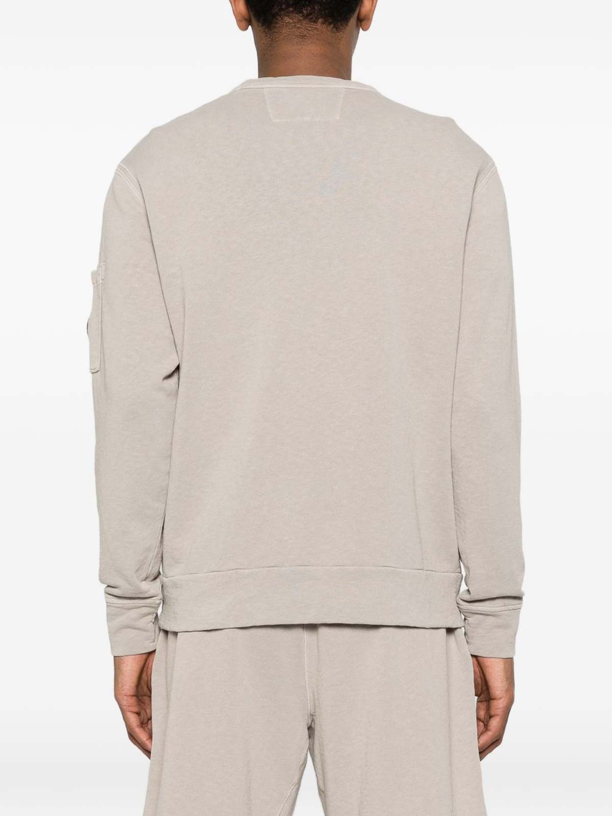 Verres de poche plaqués gris, col rond, manches longues, ourlet côtelé. C.P. Company suggère de retirer tous les accessoires amovibles avant de les laver.