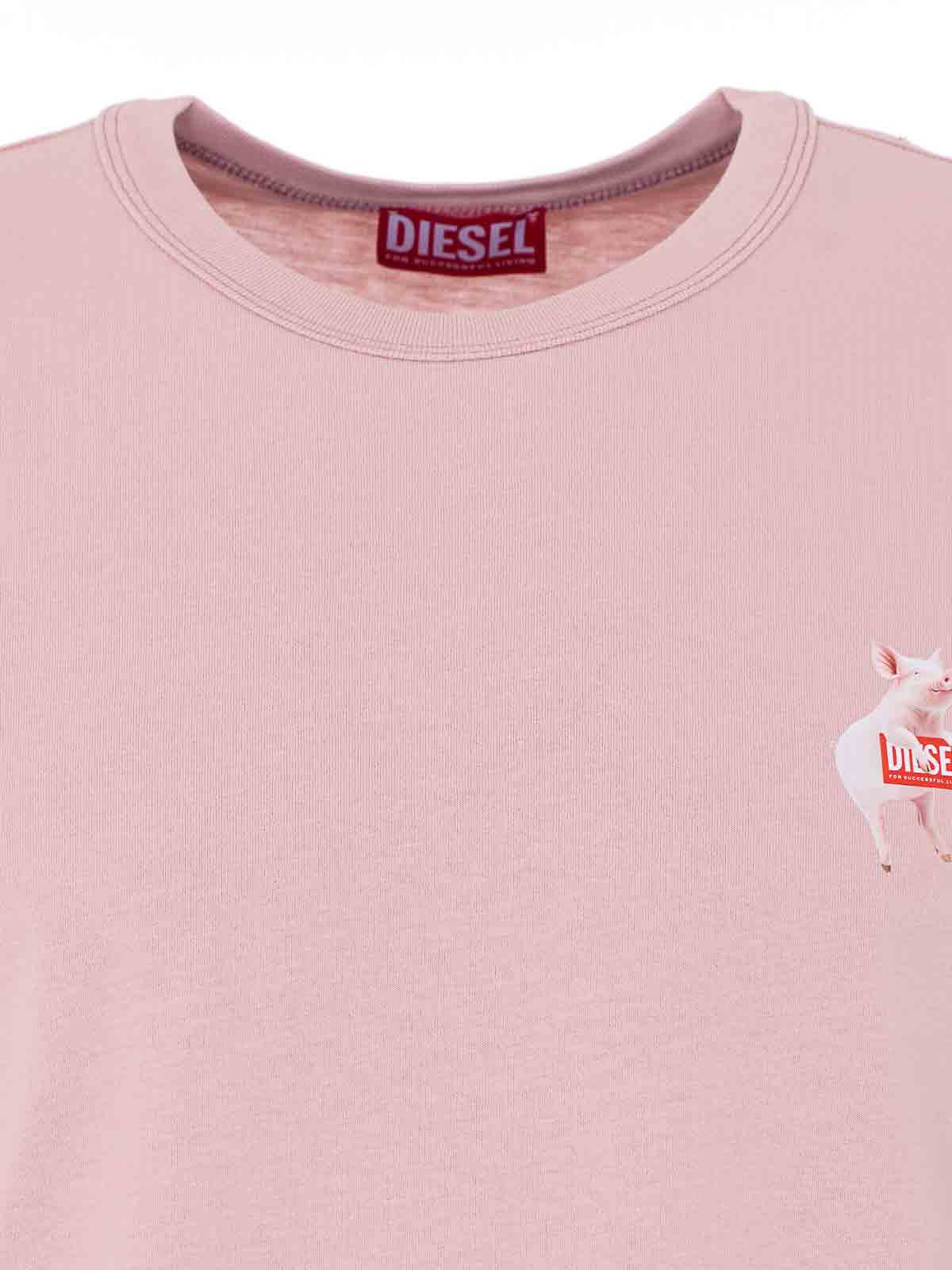 T-shirt T-Norm rose Diesel, col rond, imprimé sur le devant