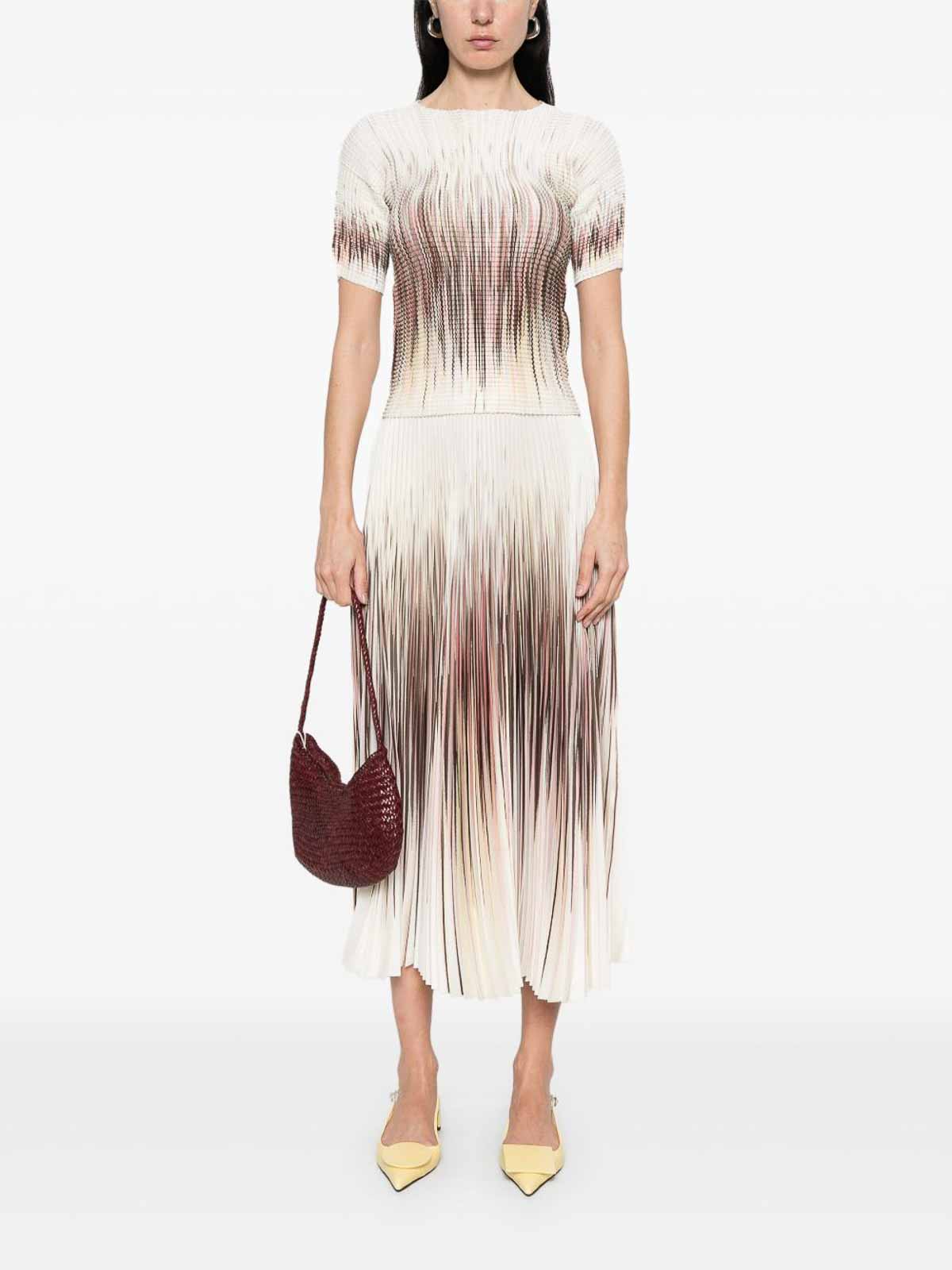 T-shirt en seersucker écru à col rond, manches courtes, ourlet droit