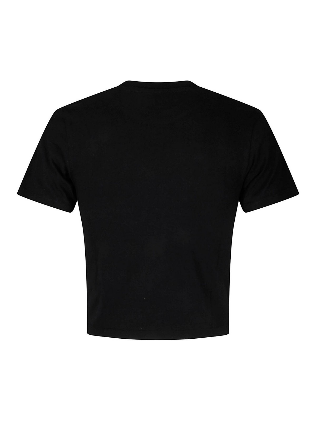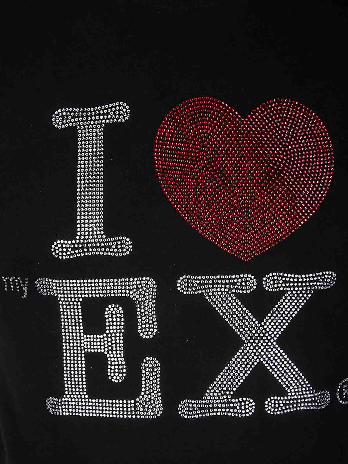 T-shirt à col rond, manches courtes, applications en strass sur le devant, coupe courte.