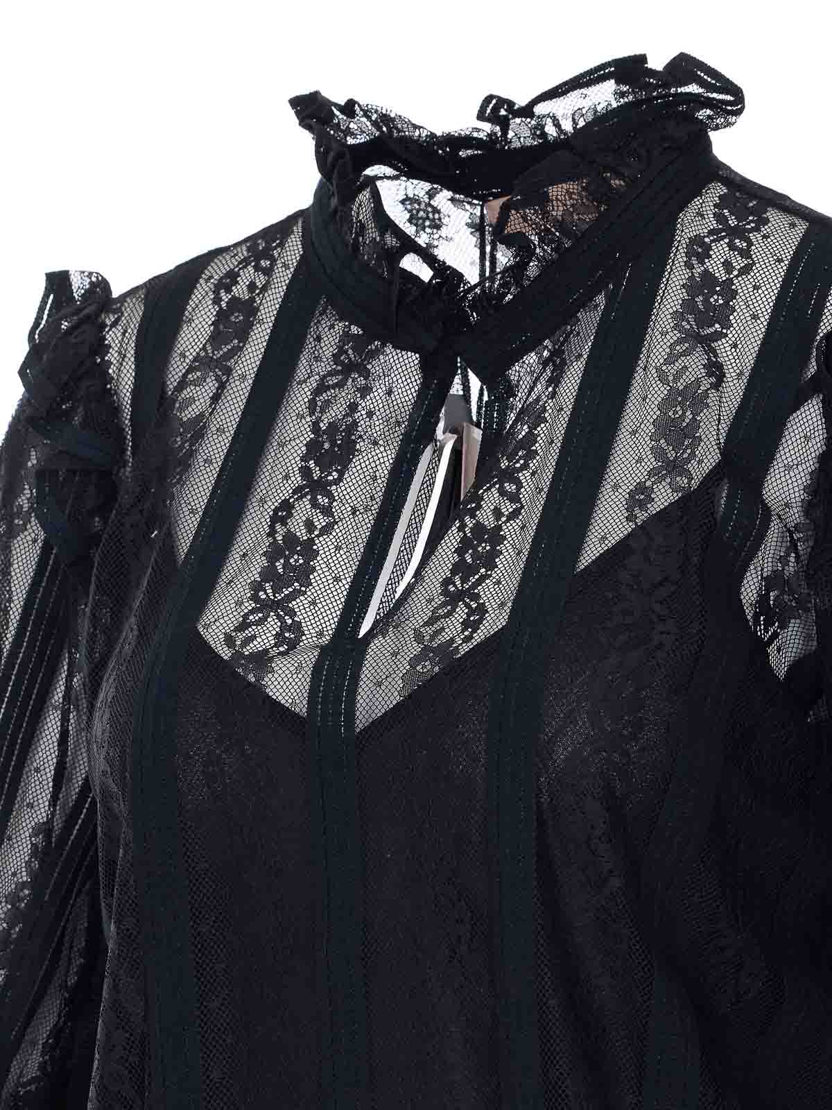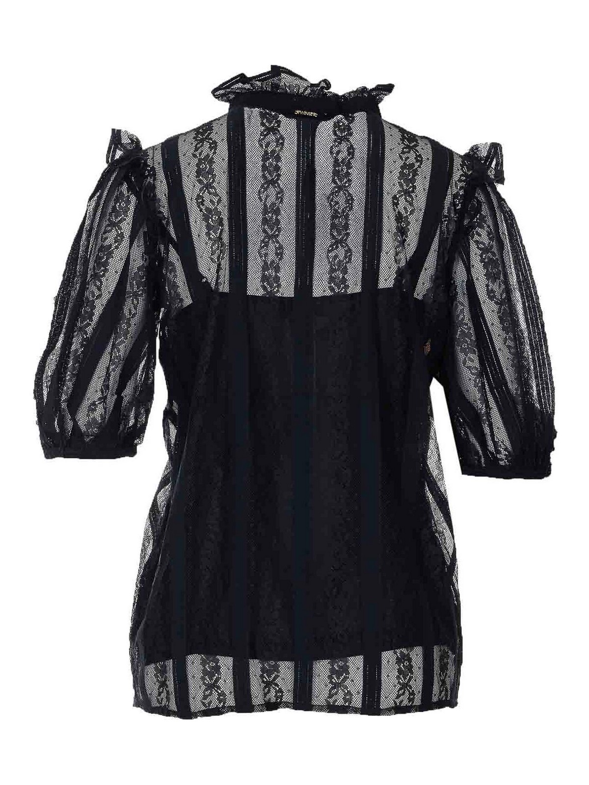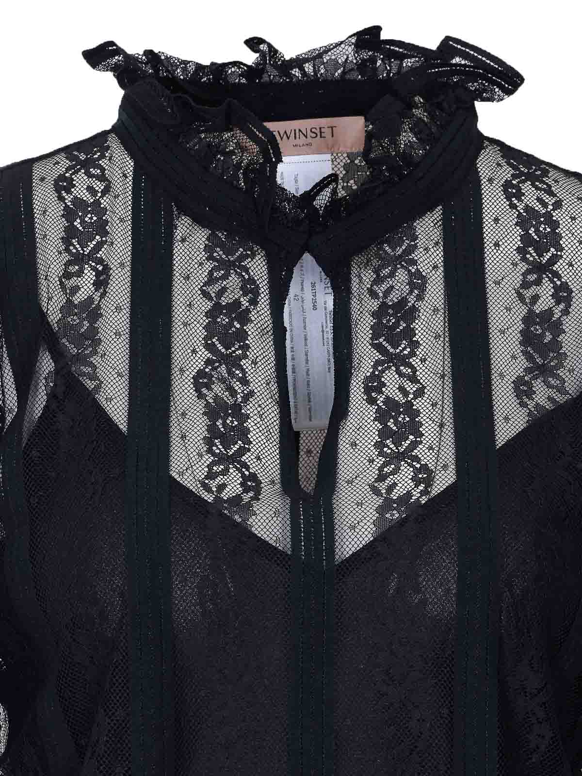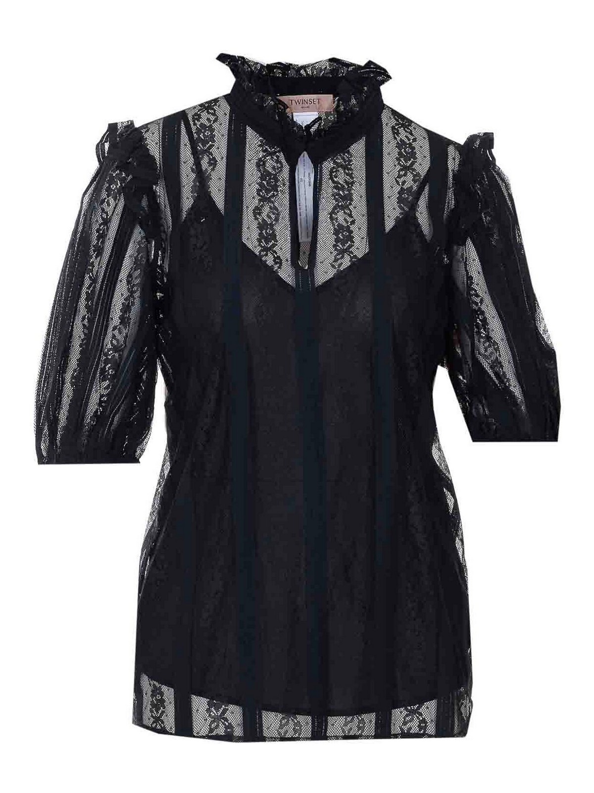 T-shirt en dentelle noire Twinset, col rond, jupon, manches courtes, col en V