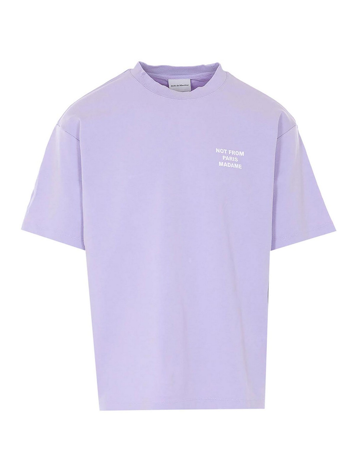 T-shirt Drole de monsieur lilas le slogan, col rond, logo imprimé sur le devant et dans le dos