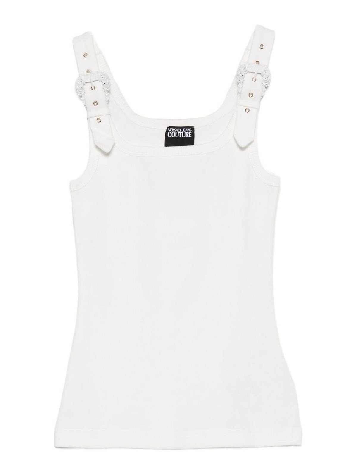 Top en coton blanc avec détail de boucle de Versace Jeans Couture