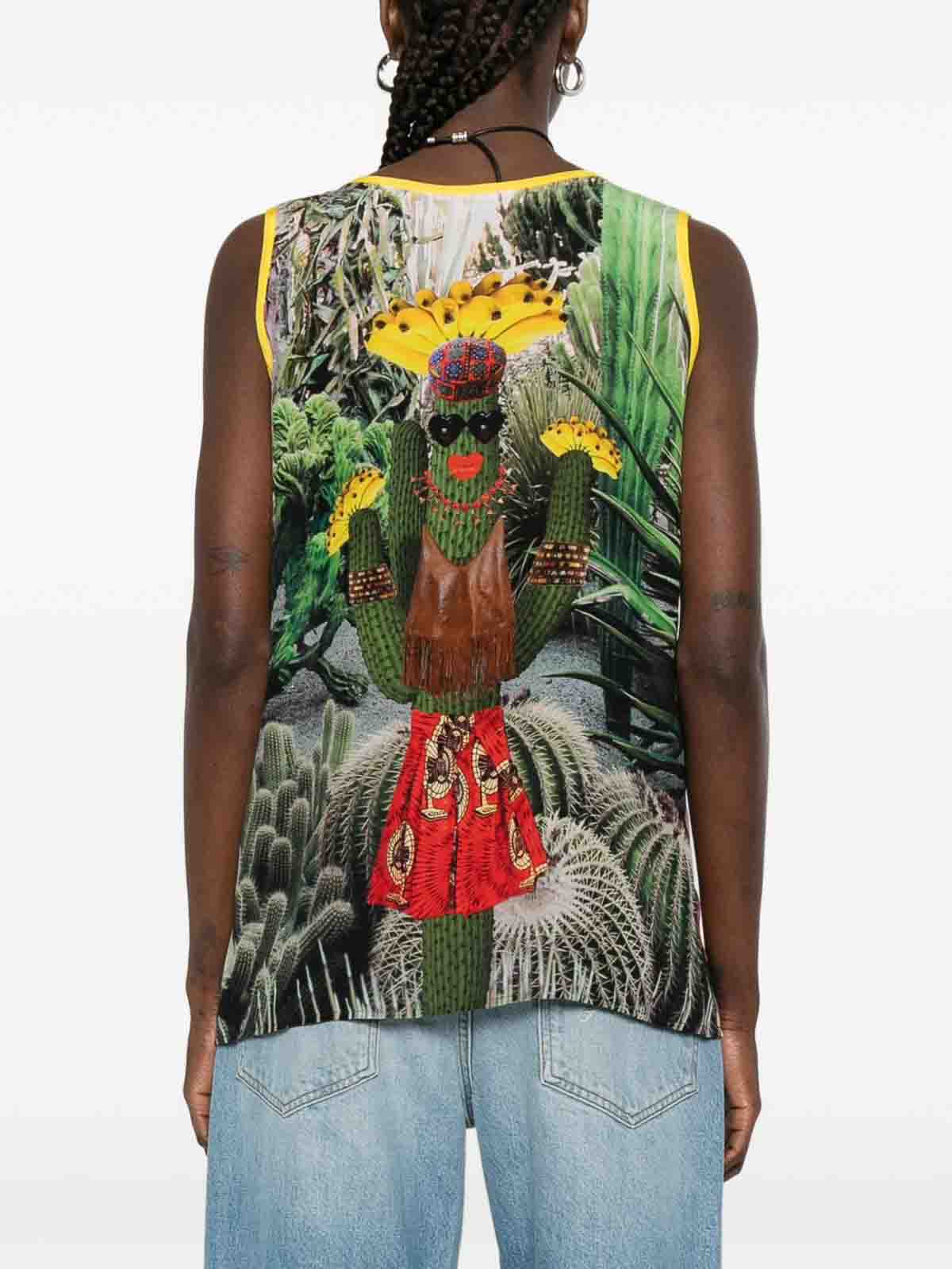 Col rond bleu à imprimé cactus multicolore sans manches