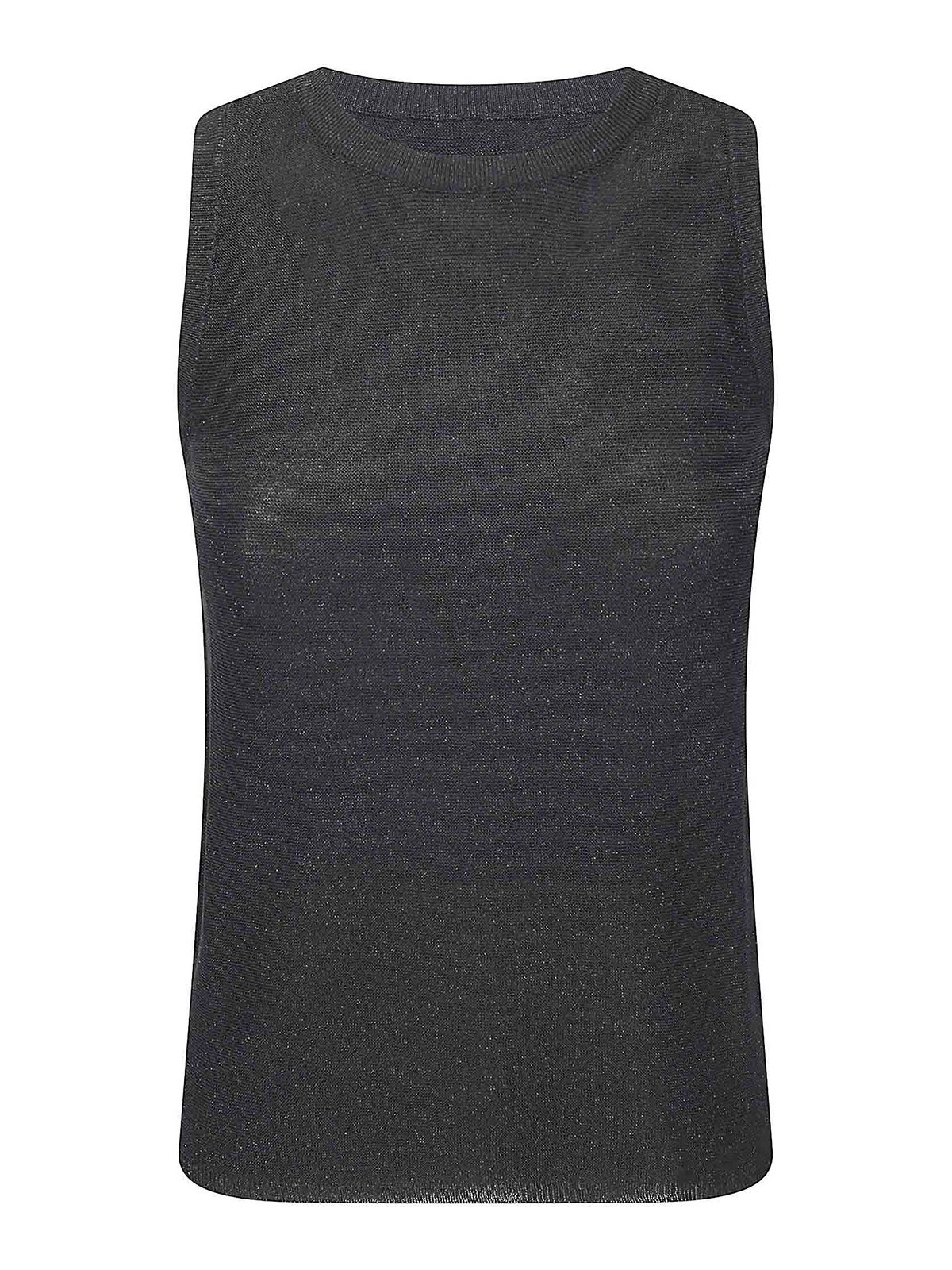 Top à col rond en lurex avec ourlet côtelé.