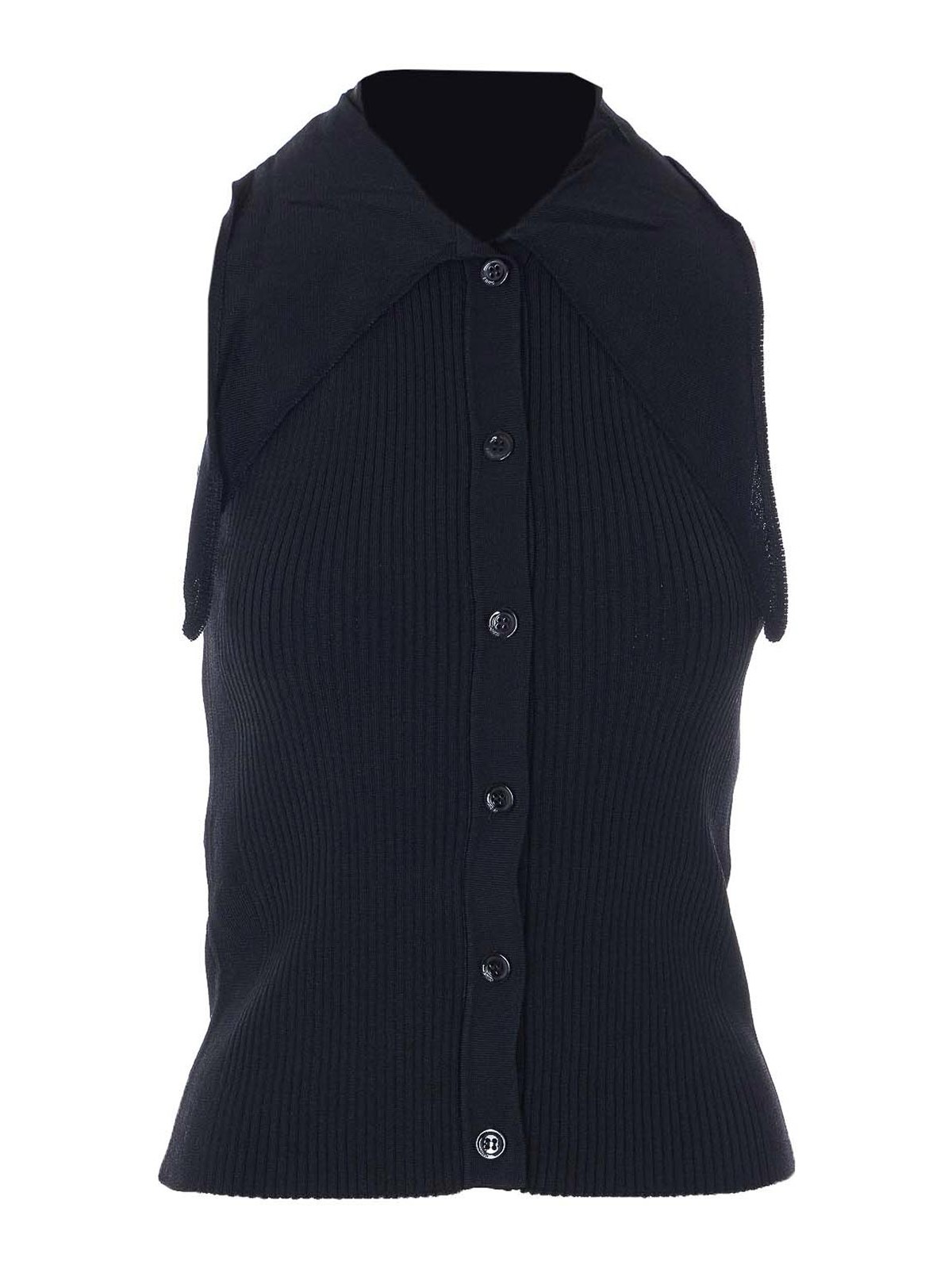 Top en forme de neve noir Pinko, fermeture boutonnée, sans manches, brodé dans le dos