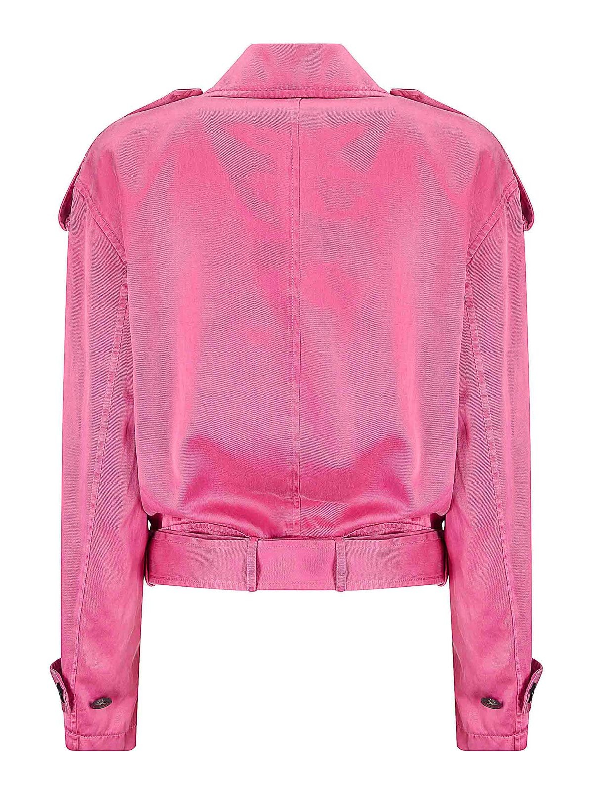 Veste en cupro et coton, tissu léger, design de style motard, ceinture en bas, poches latérales.