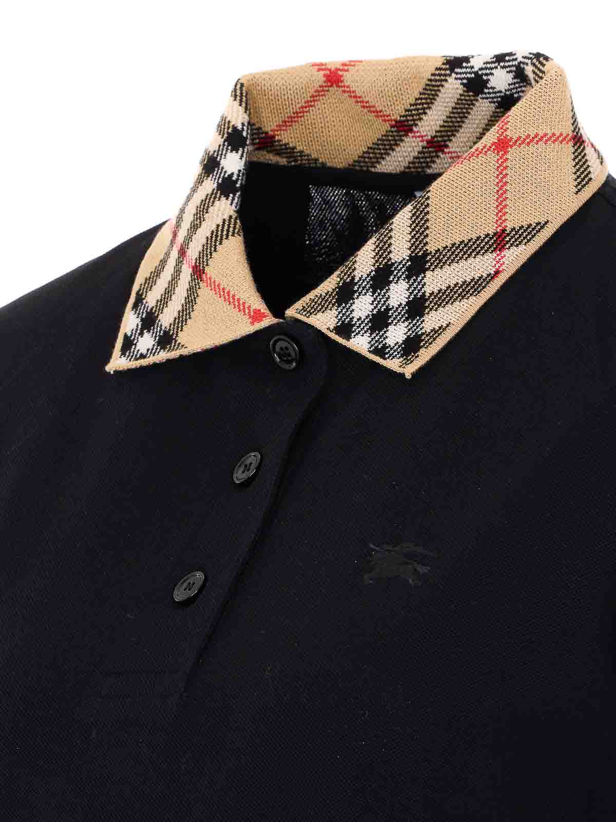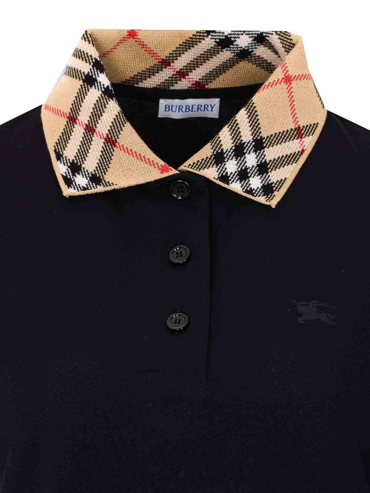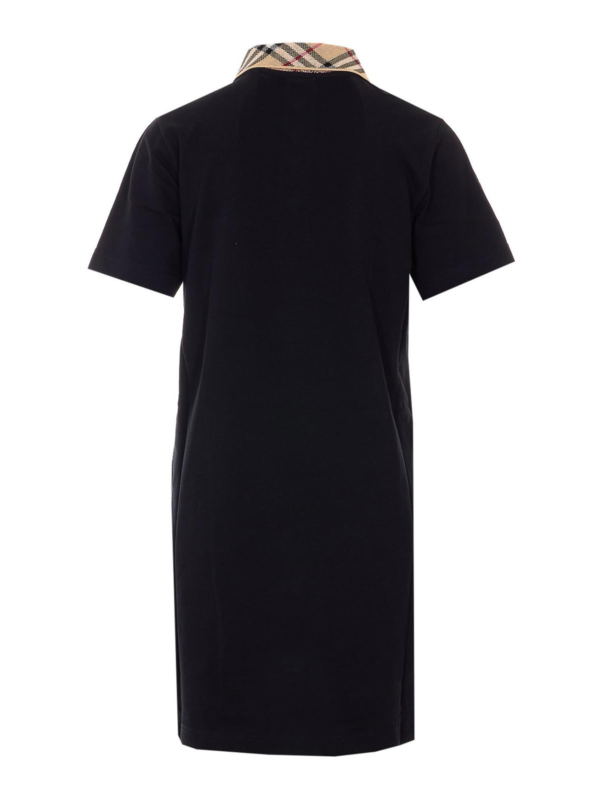Burberry black check dress, regular collar with check motif, short sleeves, embroidered logo on the front, buttons closure