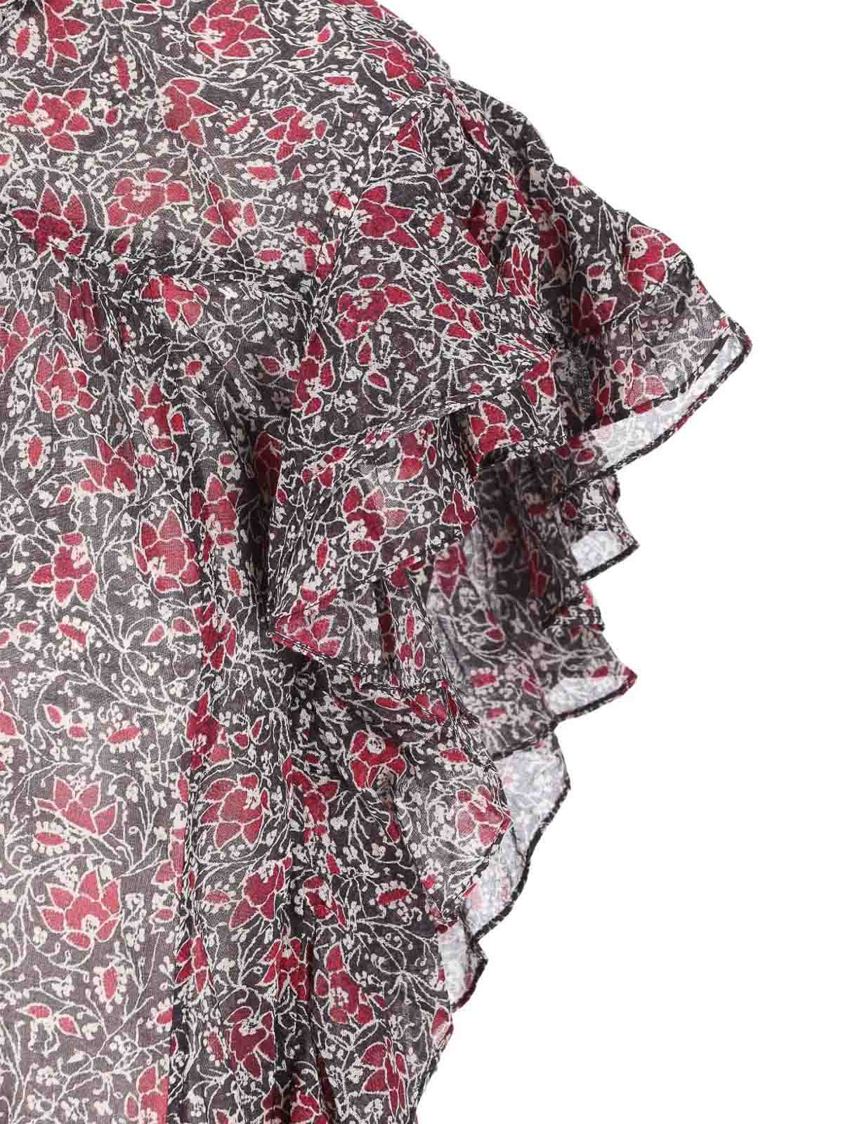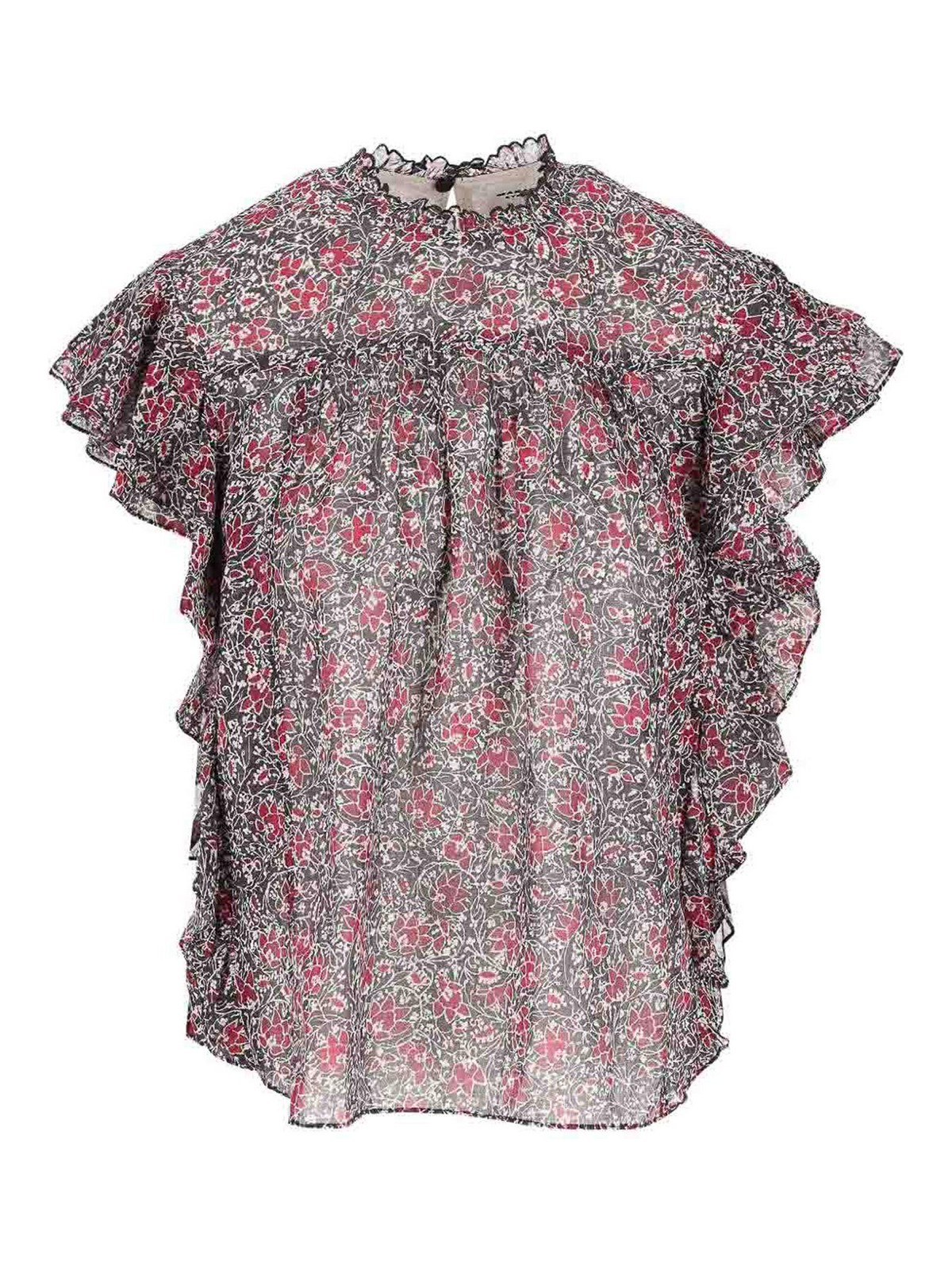 Isabel Marant Etoile: Tops & Tank tops - Black Floral Print Top With Ruffle Trim
