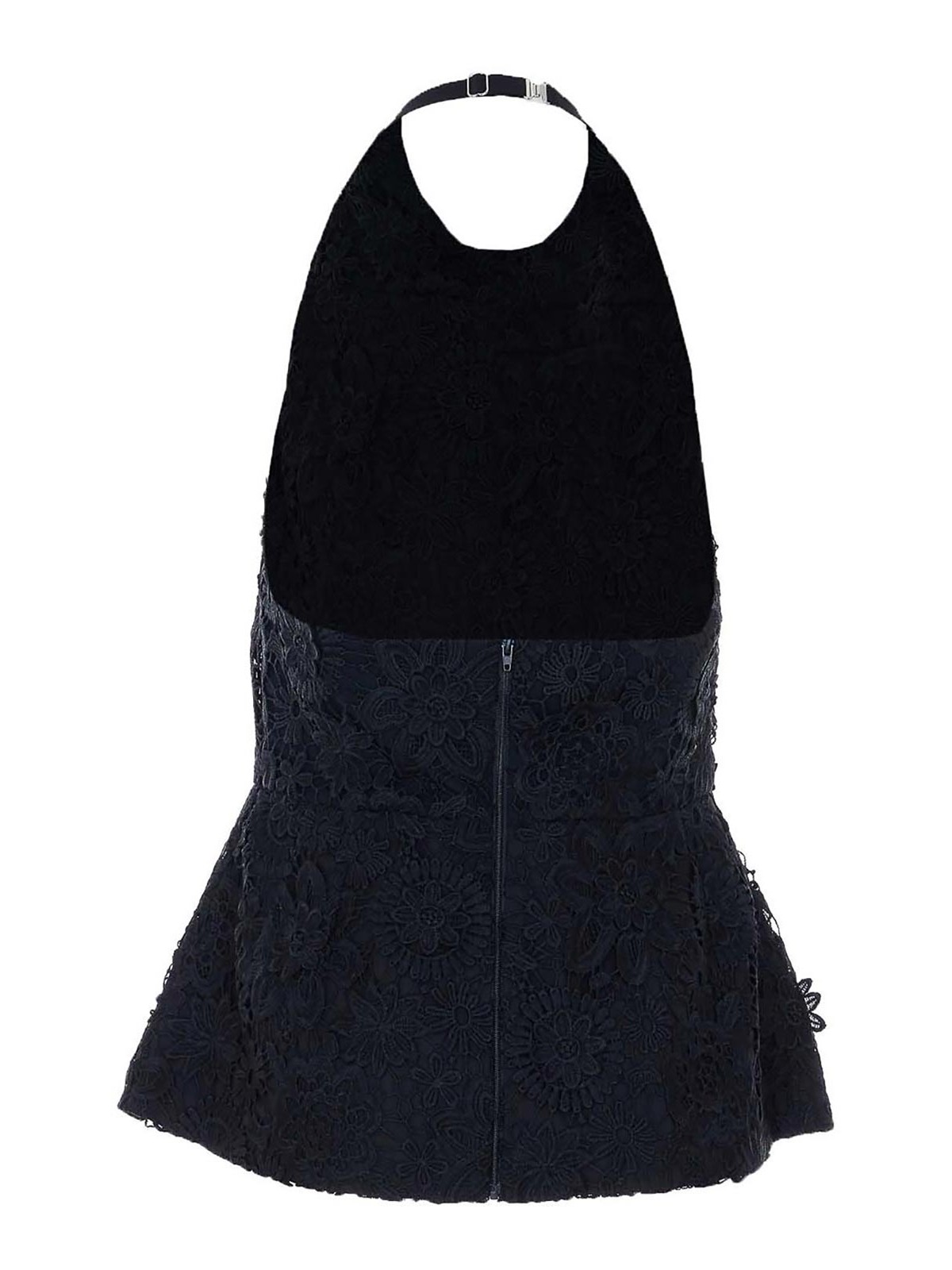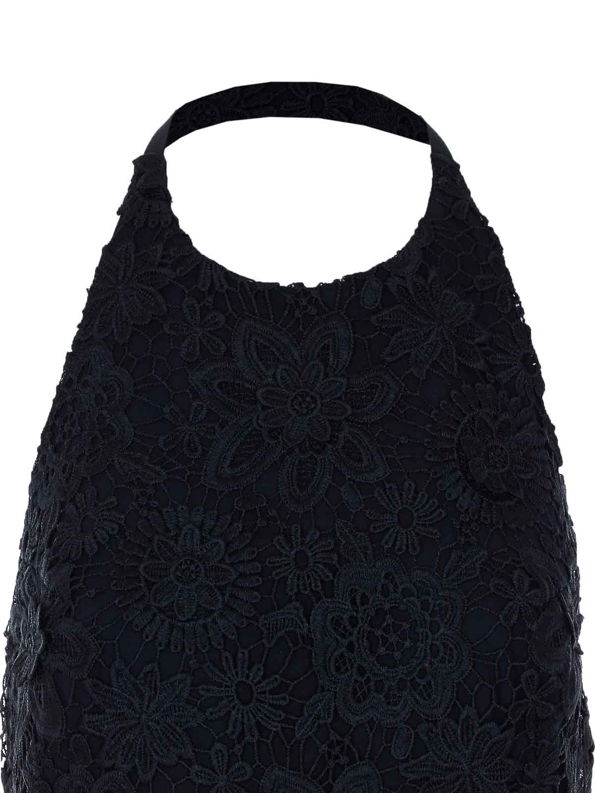 Essentiel antwerp black jarot top, zip closure on the back, halter neck with hook closure on the back, open on the back, embroidered