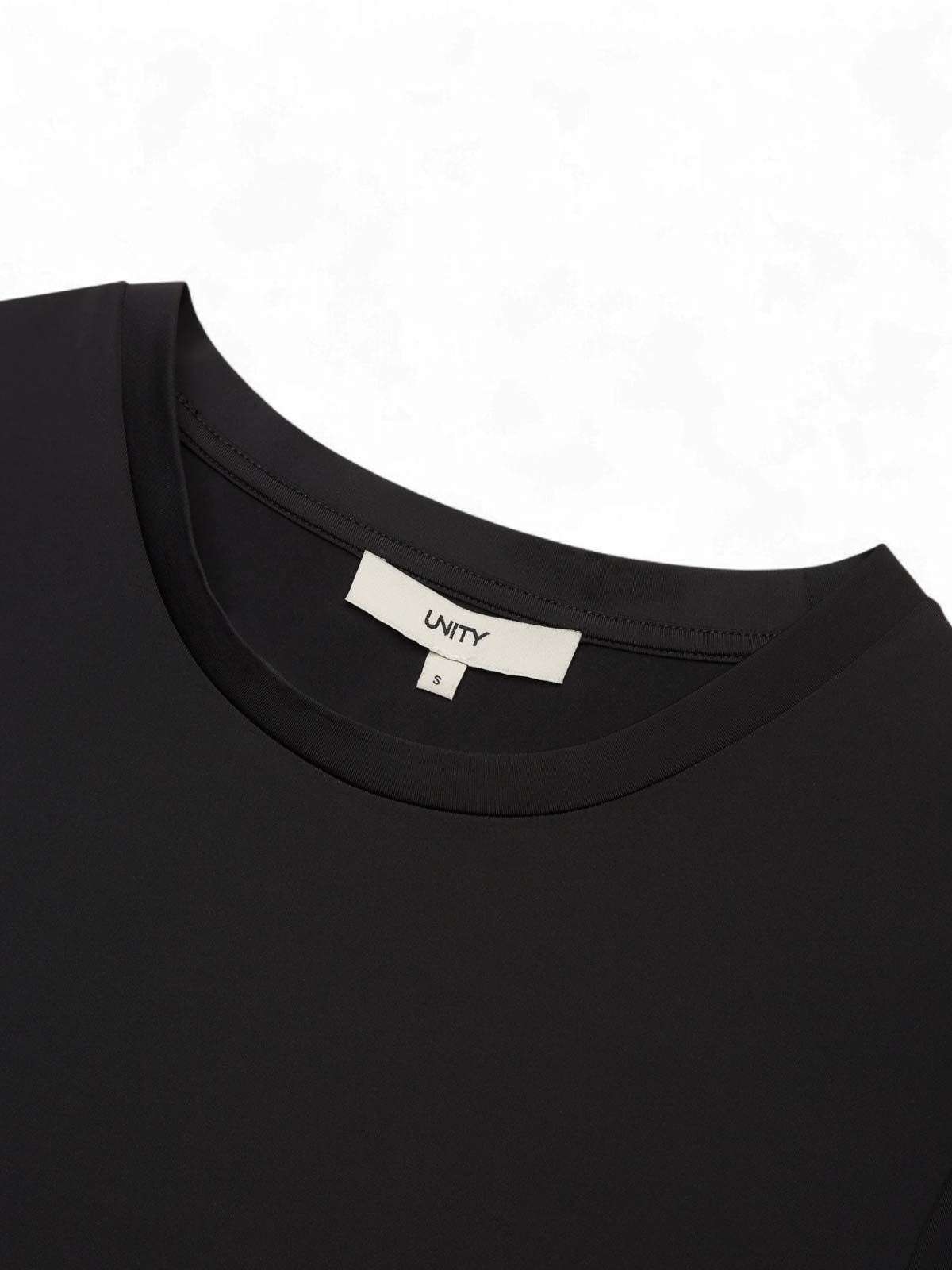 Unity, crew tee, technical t-shirt, black, short-sleeved technical t-shirt made of light stretch fabric, designed to guarantee comfort and freedom of movement at all t.mes s of the day. the essential design with a clean crew neck enhances a minimal and contemporary line, while the.