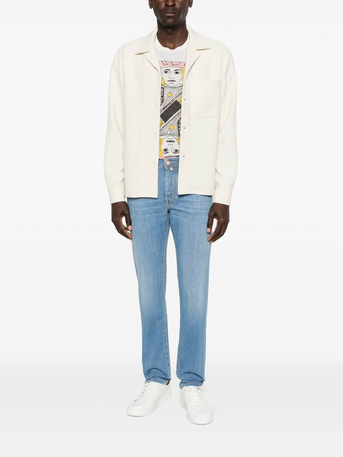 Bard jeans by jacob cohn, crafted in italy from premium-quality denim. designed in a classic five-pocket style, featuring contrast stitching and silver-tone hardware for a refined contemporary look. tailored details and superior fit make them perfect for elevated casual and smart-casual outfits from the new season collects ion.