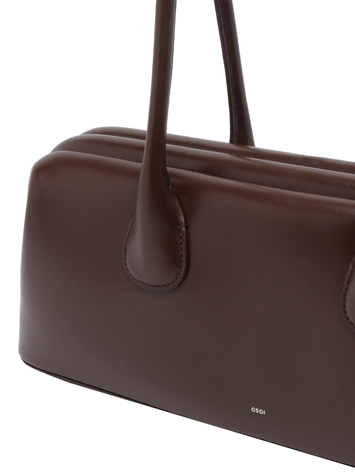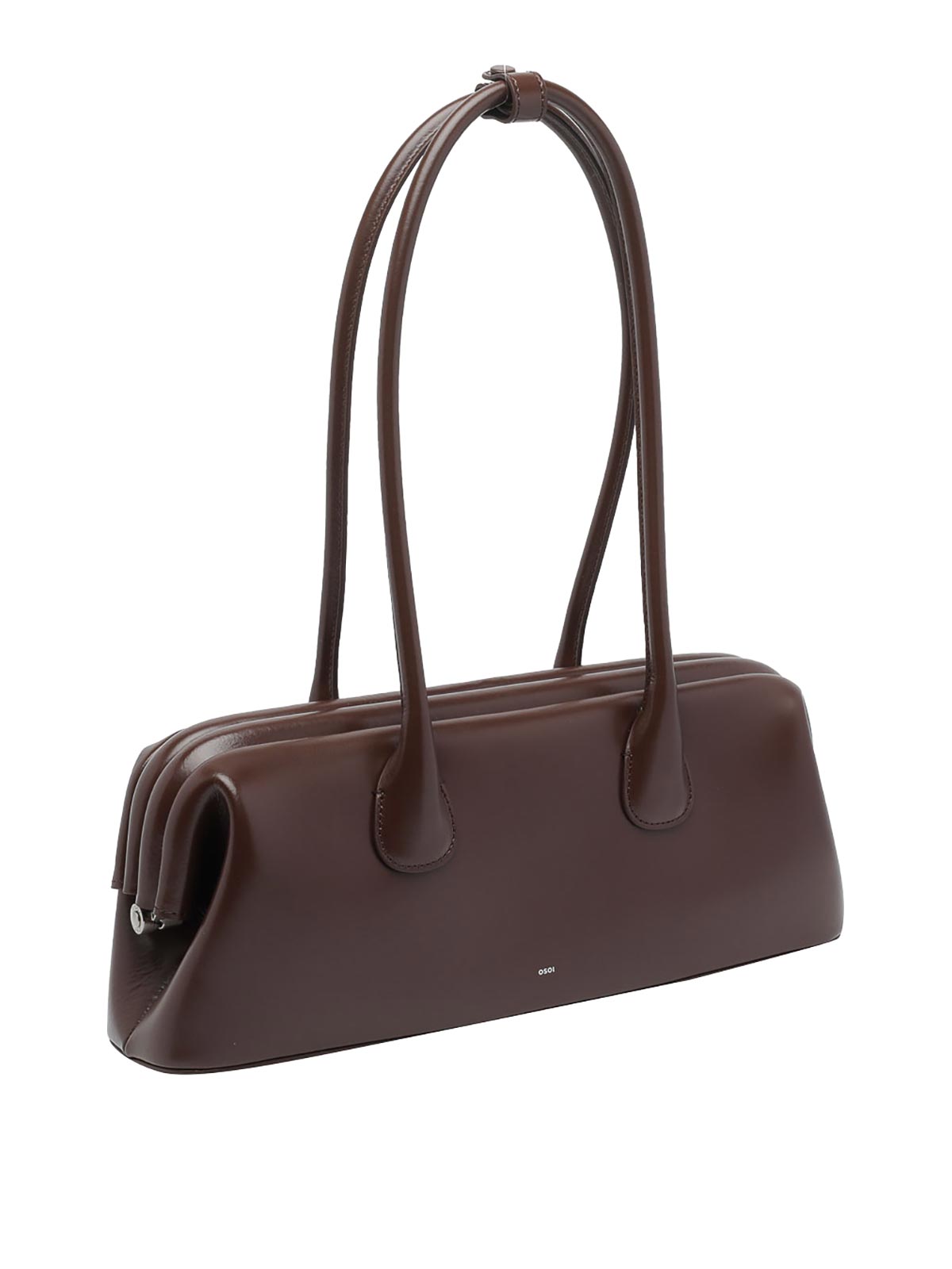 Osoi brown boat wide shoulder bag, spring claps, one inner open pocket, 2 handles, logo