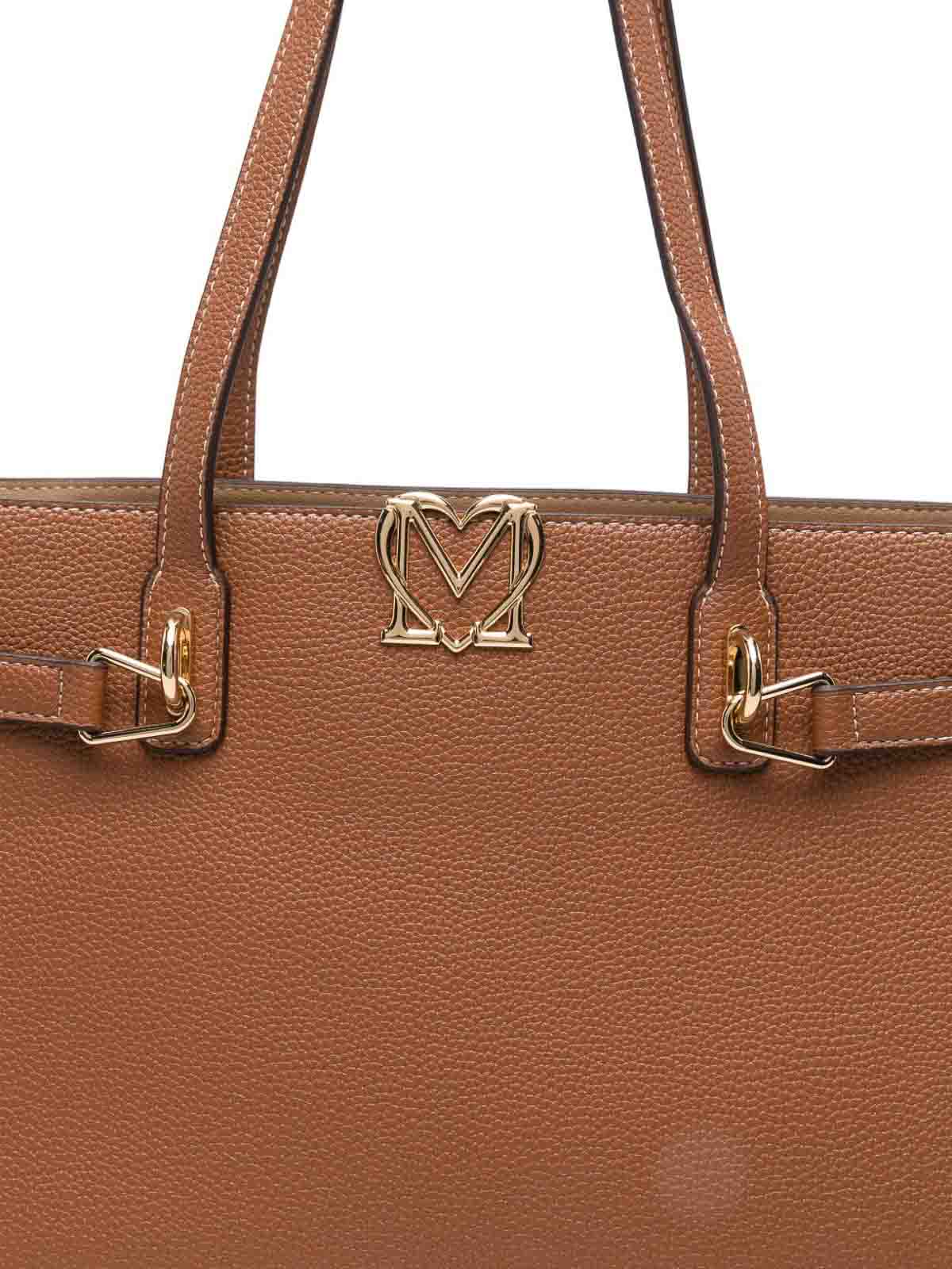 The brown womens shopping bag by love moschino is an elegant and practical accessory, perfect for everyday use. made from high-quality eco-leather, it offers ample space to carry all your essentials in style. ideal to pair with casual looks or more sophisticated outfits, it combines functionality and contemporary design with a love moschino signature.