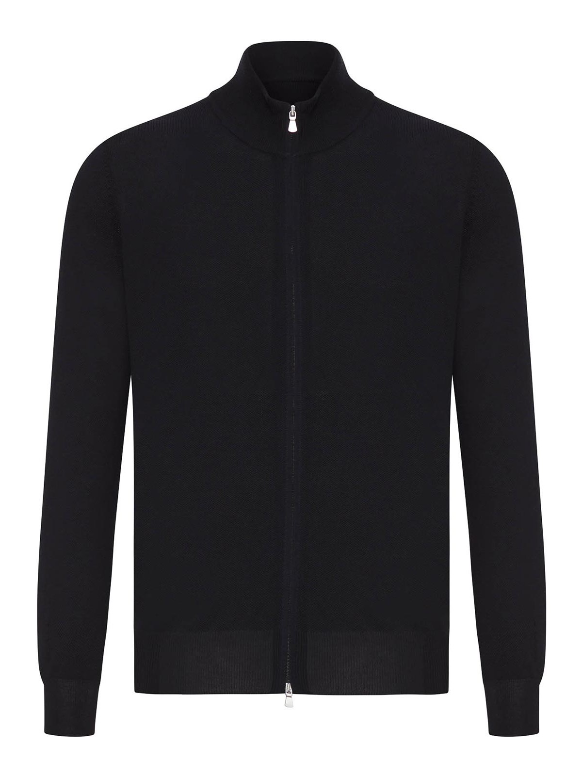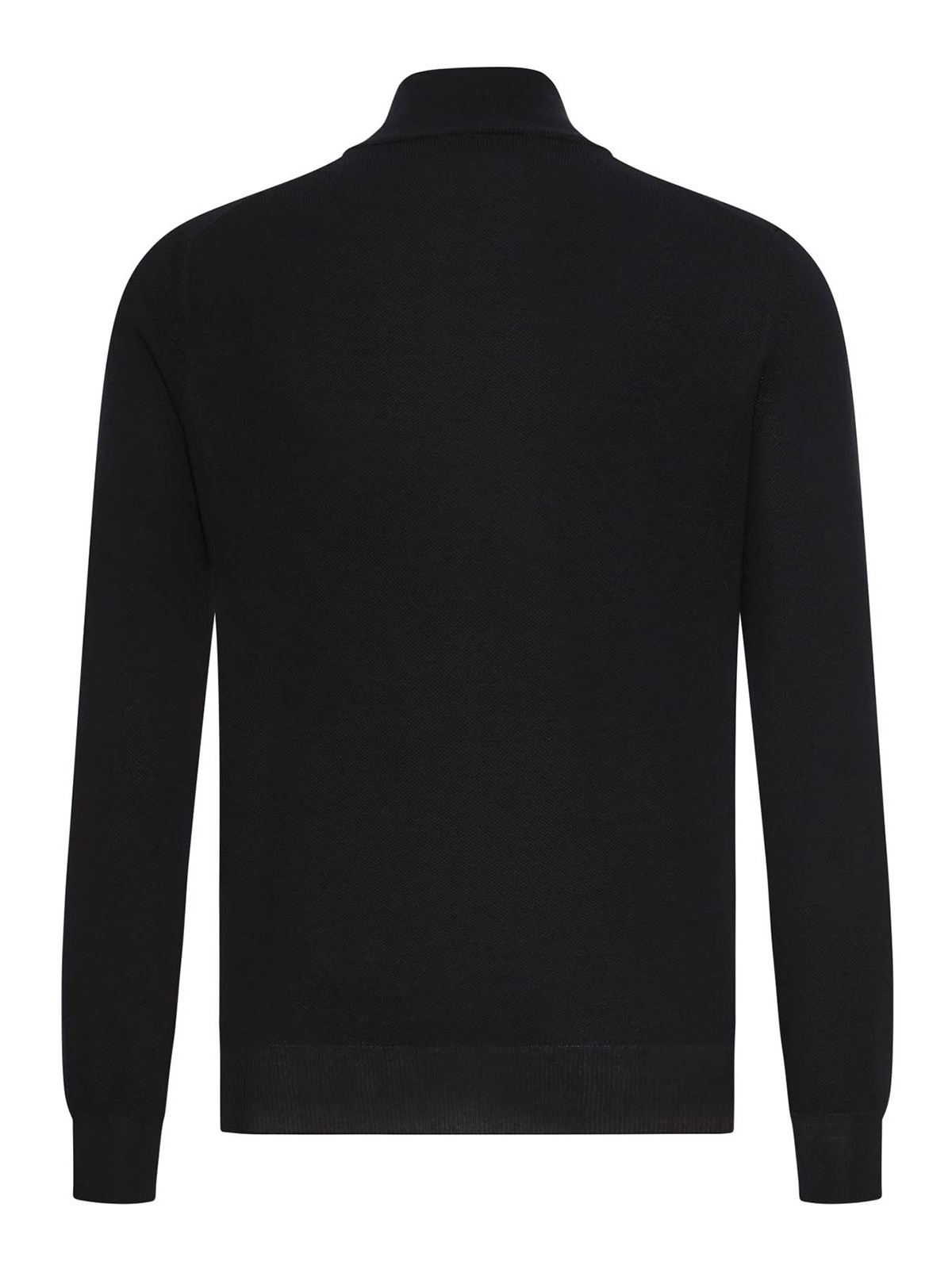 structured high collar, two-way zip front closure, long sleeves with ribbed cuffs, ribbed straight hem, regular fit, 100% cotton, color: black