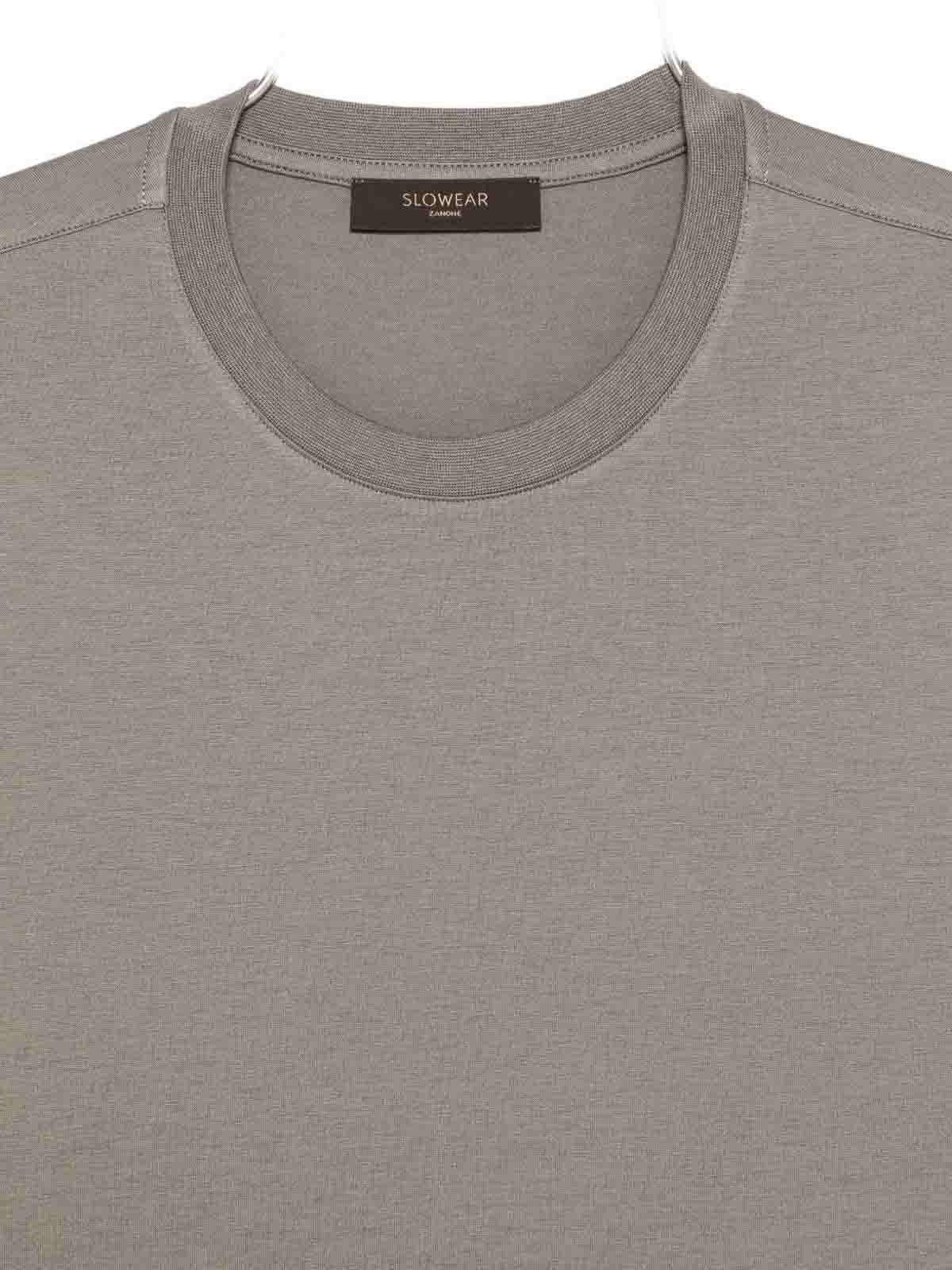 Green crew neck short sleeves composition 70% cotton, 30% silk.