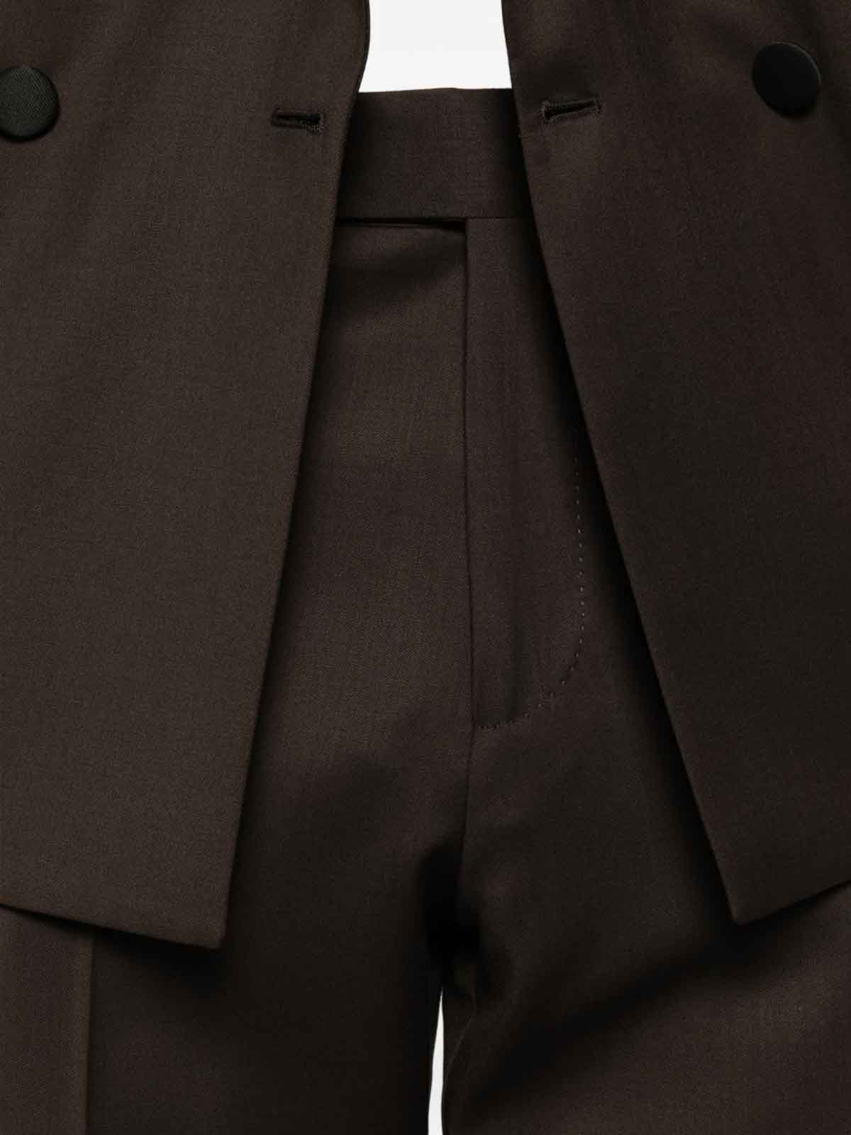 Origin: Italy features brown pointed lapels double-breasted button closure flap pockets buttoned hems.