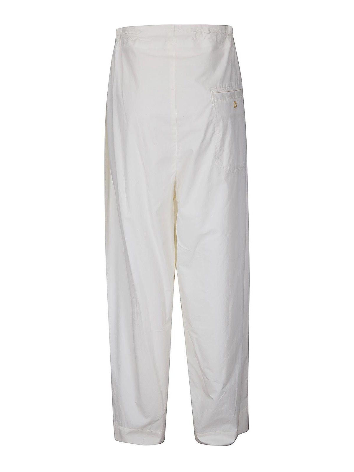 Oversized high-waisted trousers, elastic with drawstring, button and zip closure, side pockets, straight leg.