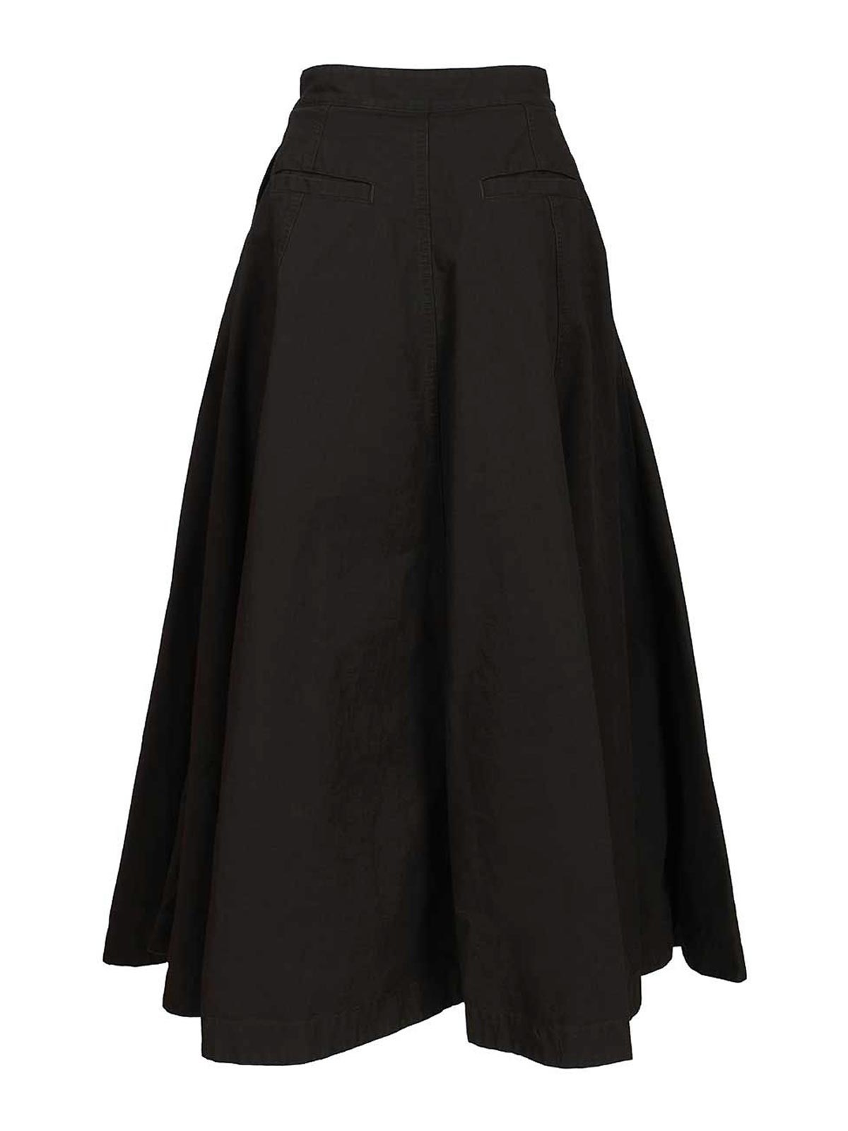 Godet maxi skirt in black ripstop cotton. invisible zip fly with snap closure. two front slit pockets and two back welt pockets.
