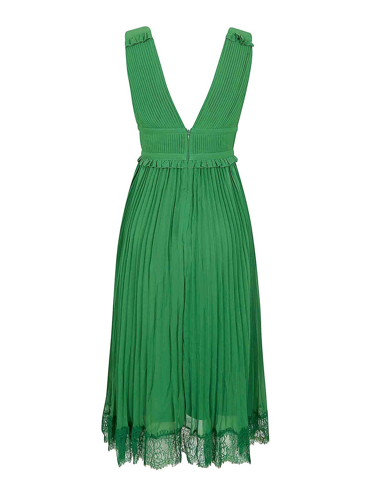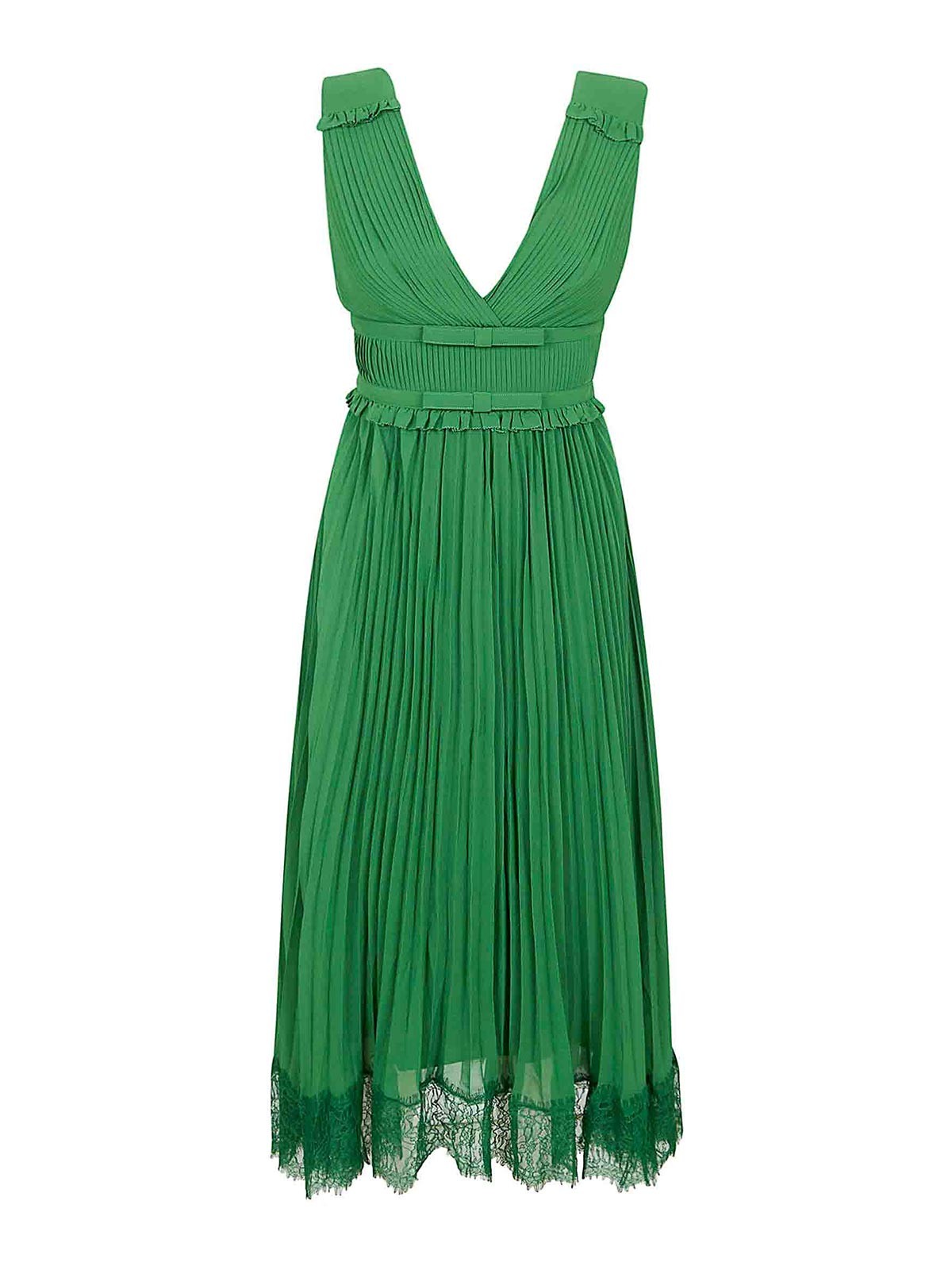 Self Portrait: knee length dresses - Green Chiffon Midi Dress