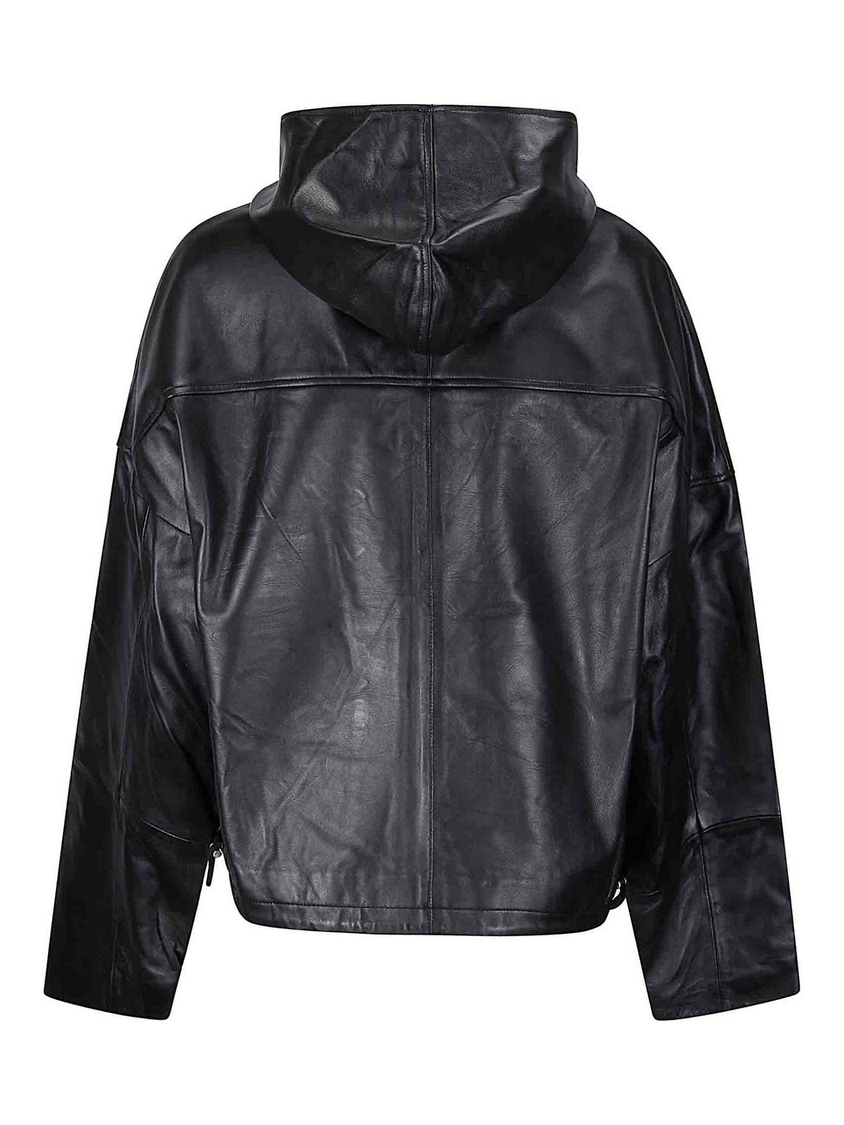 Leather jacket with hood, zip closure, regular fit.