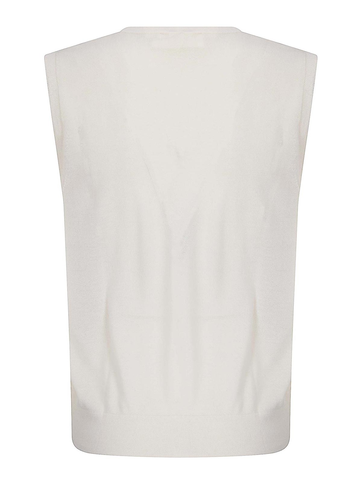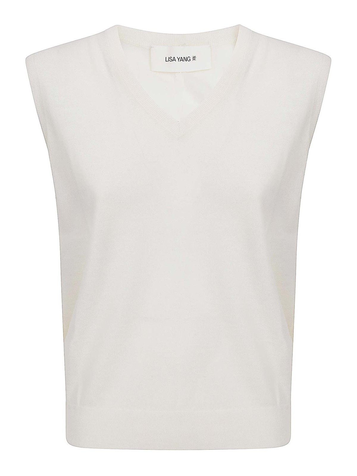 Sleeveless top with v-neck in soft and light cashmere, regular fit, contrasting collar.
