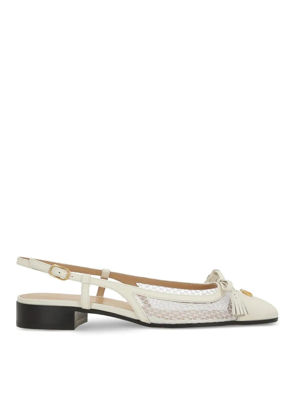 Designer white bow, - tone logo slingback strap block