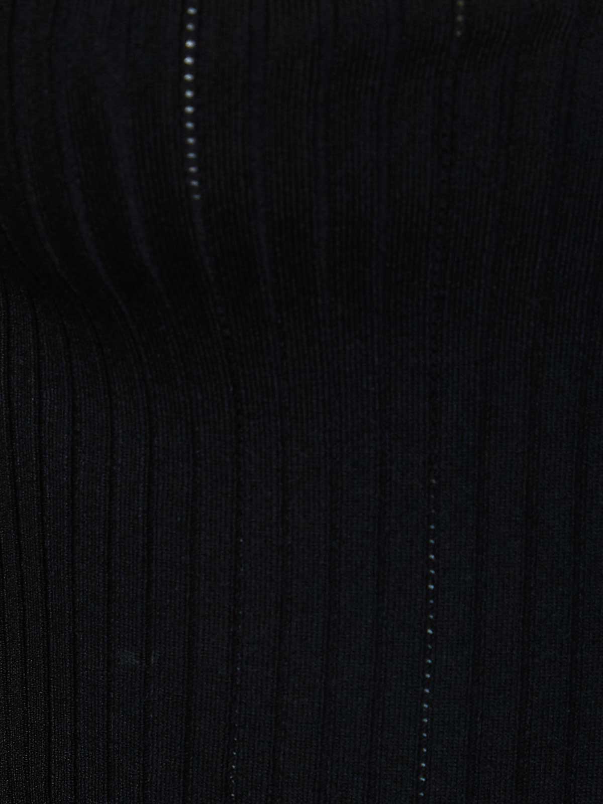 Perforated ribbed knit top by Elisabetta Franchi with long sleeves characterized by open-neck design and golden metal jewel