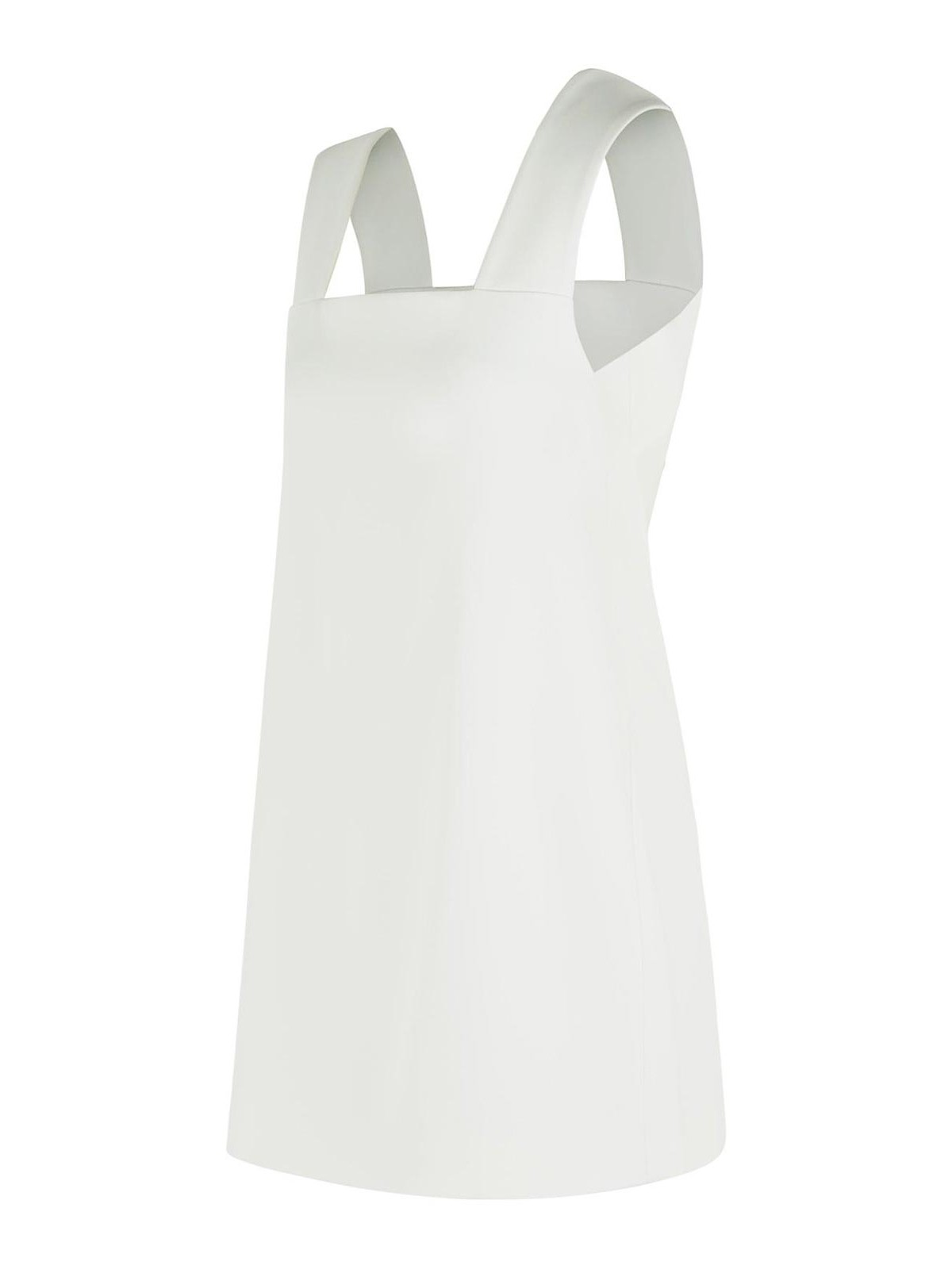 Square neckline, wide crossed shoulder straps at the back, back opening, silk lining