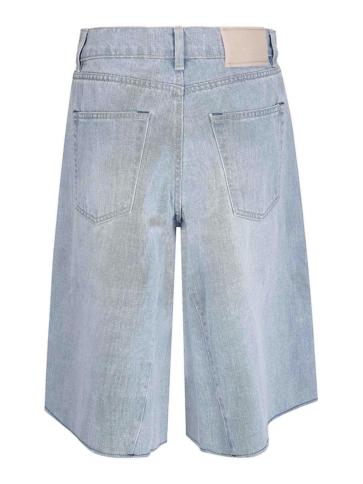 Five pocket shorts, wide leg, side pockets, back patch pockets, button and zip closure, oversized fit