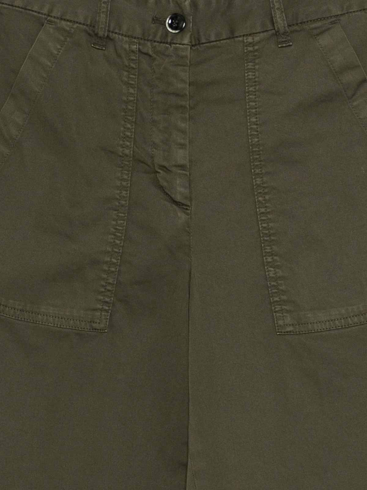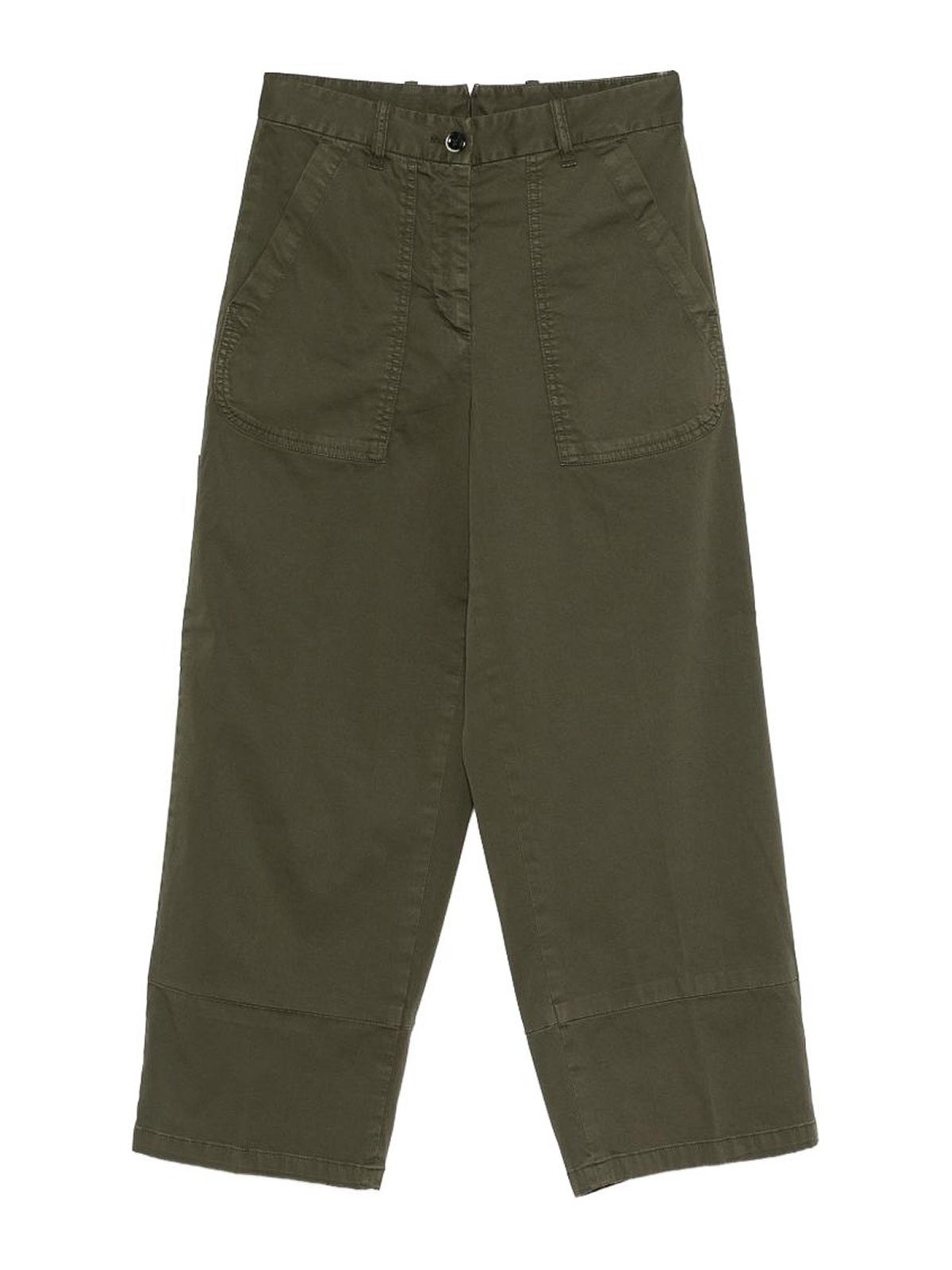 Green button fastening pockets belt loops cropped