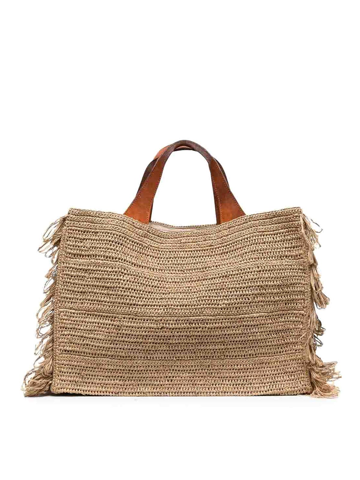 tote bag with woven design, fringe detail, two handles, magnetic closure, single compartment, internal logo application and full lining.