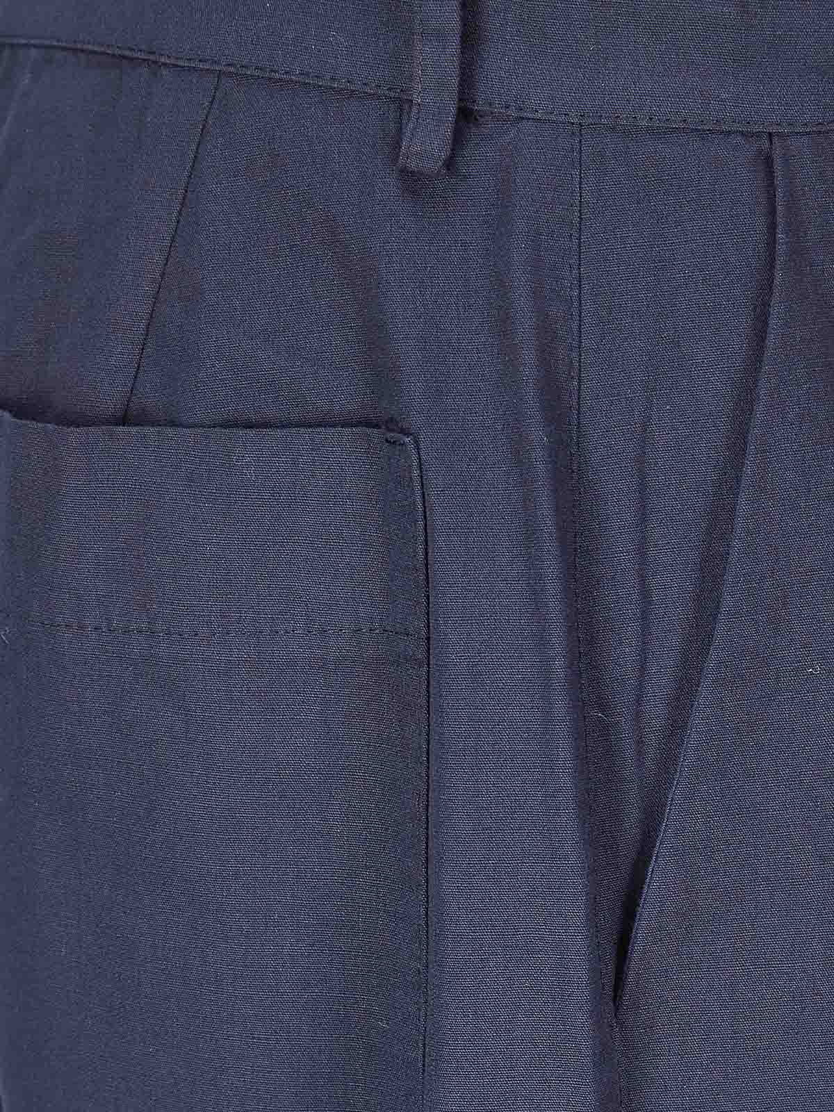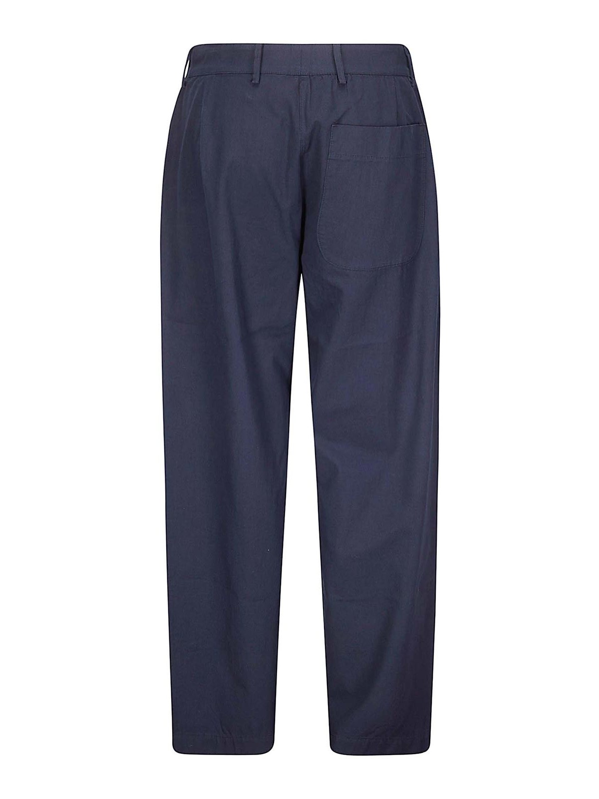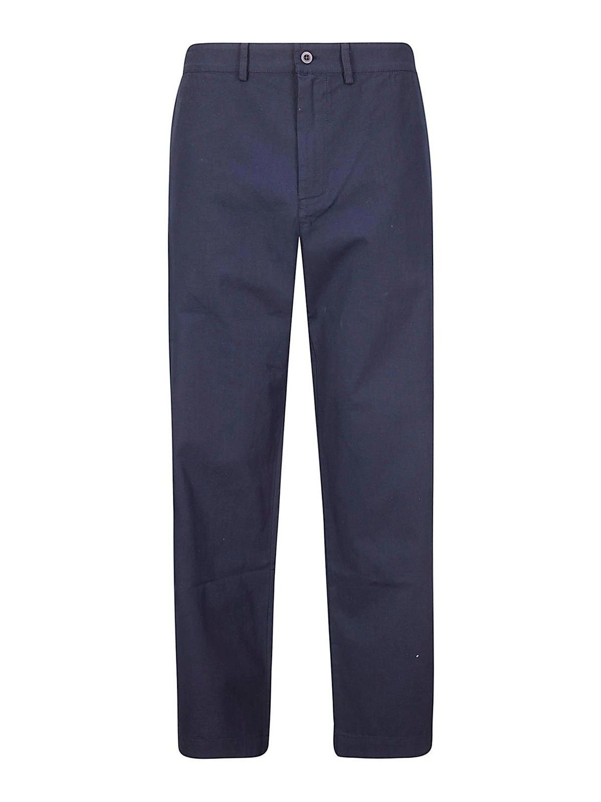Trousers in rough and light cotton, chino model, straight leg, side pockets, classic closure.