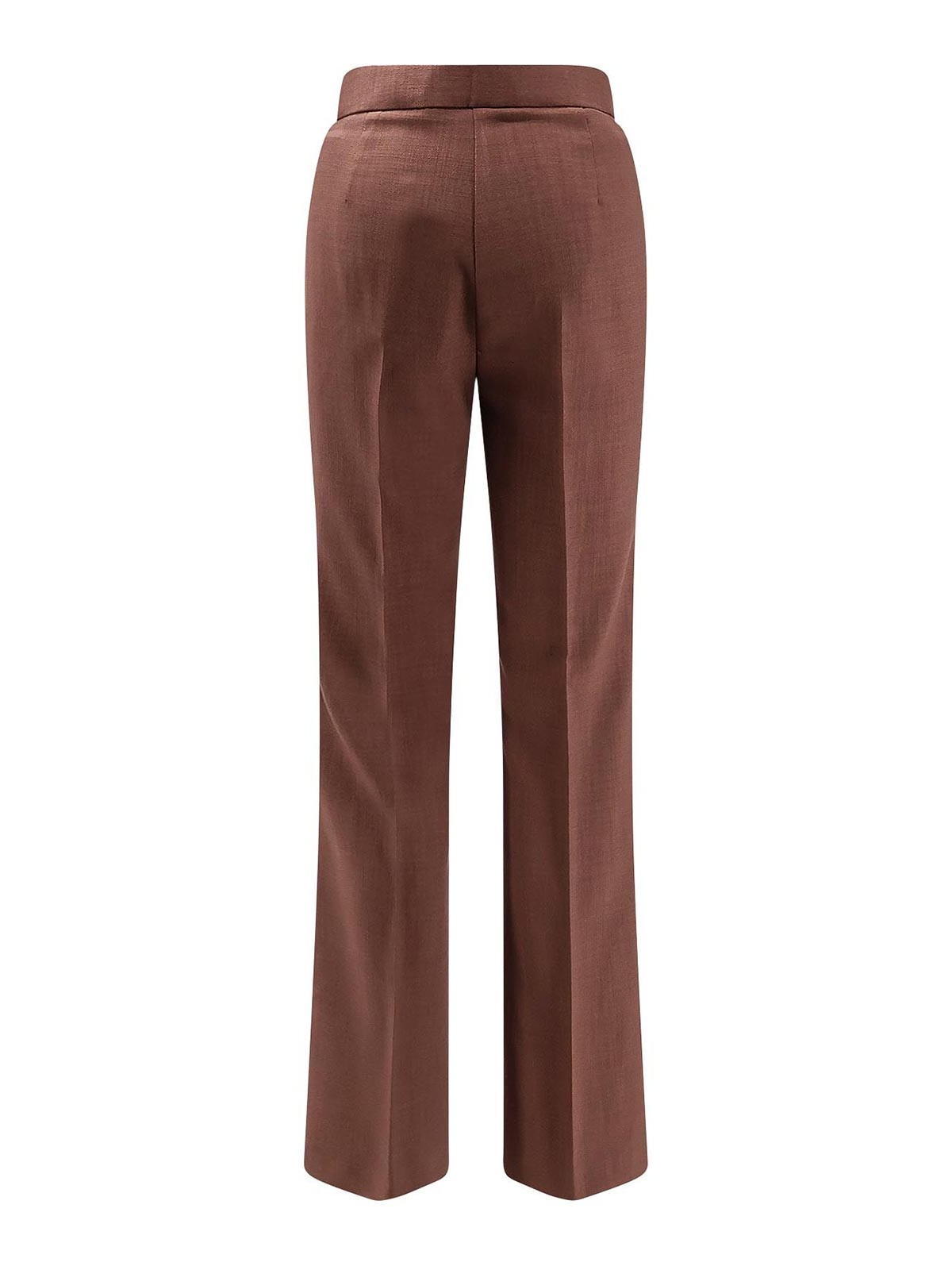 Zip and button closure, slant pockets, flared leg bottom, made in Italy, 91% viscose 8% polyester 1% elastane.