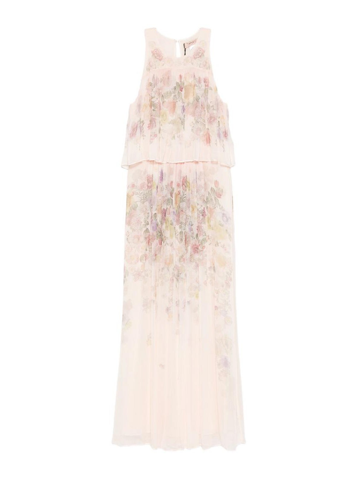 Long dress by twinset, crafted in a delicate powder pink shade featuring a romantic floral print and an empire waistline that enhances the silhouette. flowing and feminine design, perfect for ceremonies, special events, or elegant occasions. a refined piece expressing grace, lightness, and the brands distinctive style.