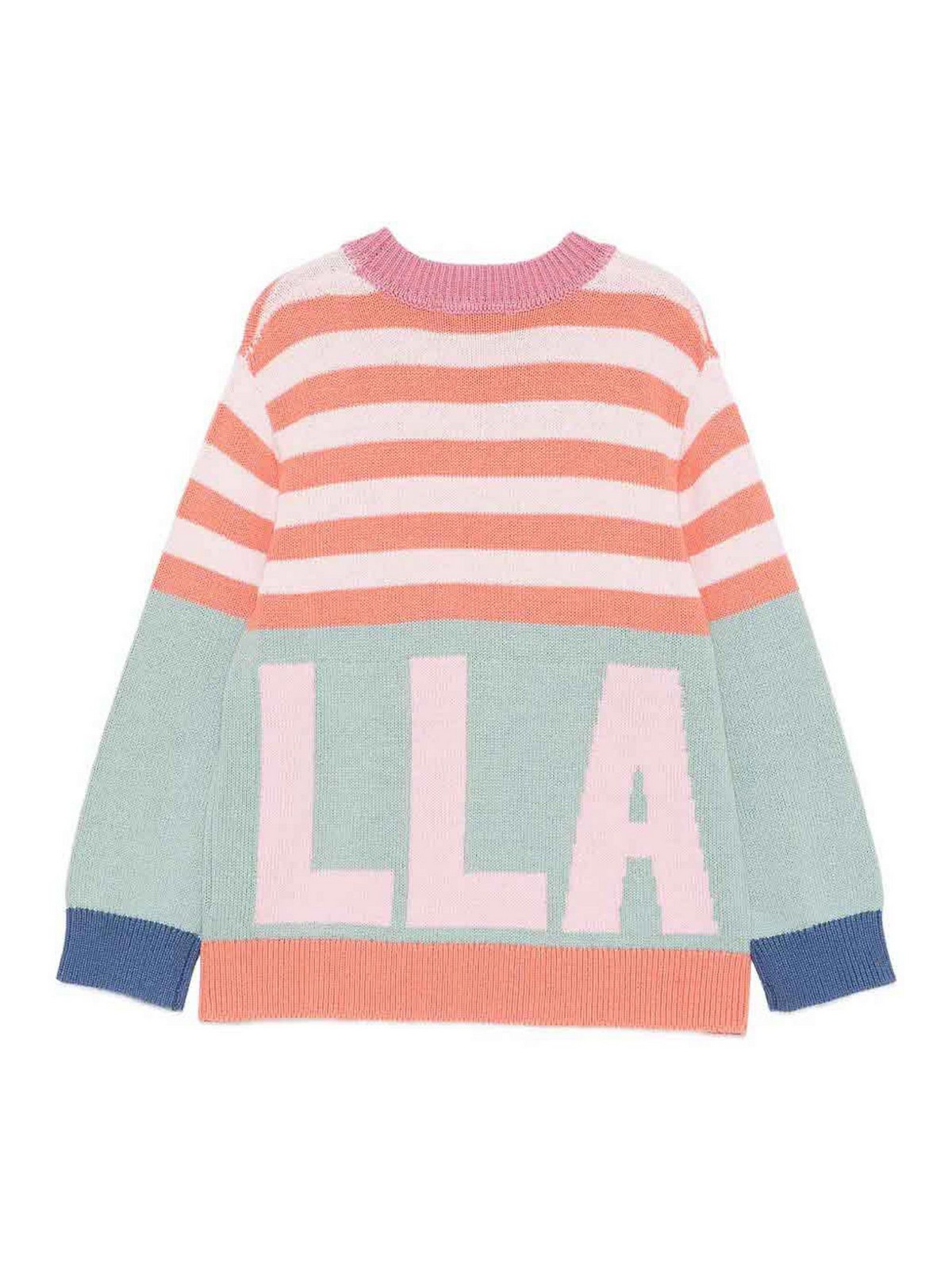Pullover with orange logo, horizontal stripes, long sleeves, crew neck, ribbed cuffs, 100% fabric